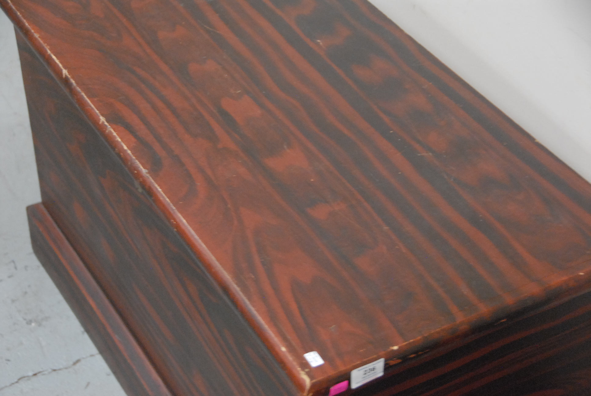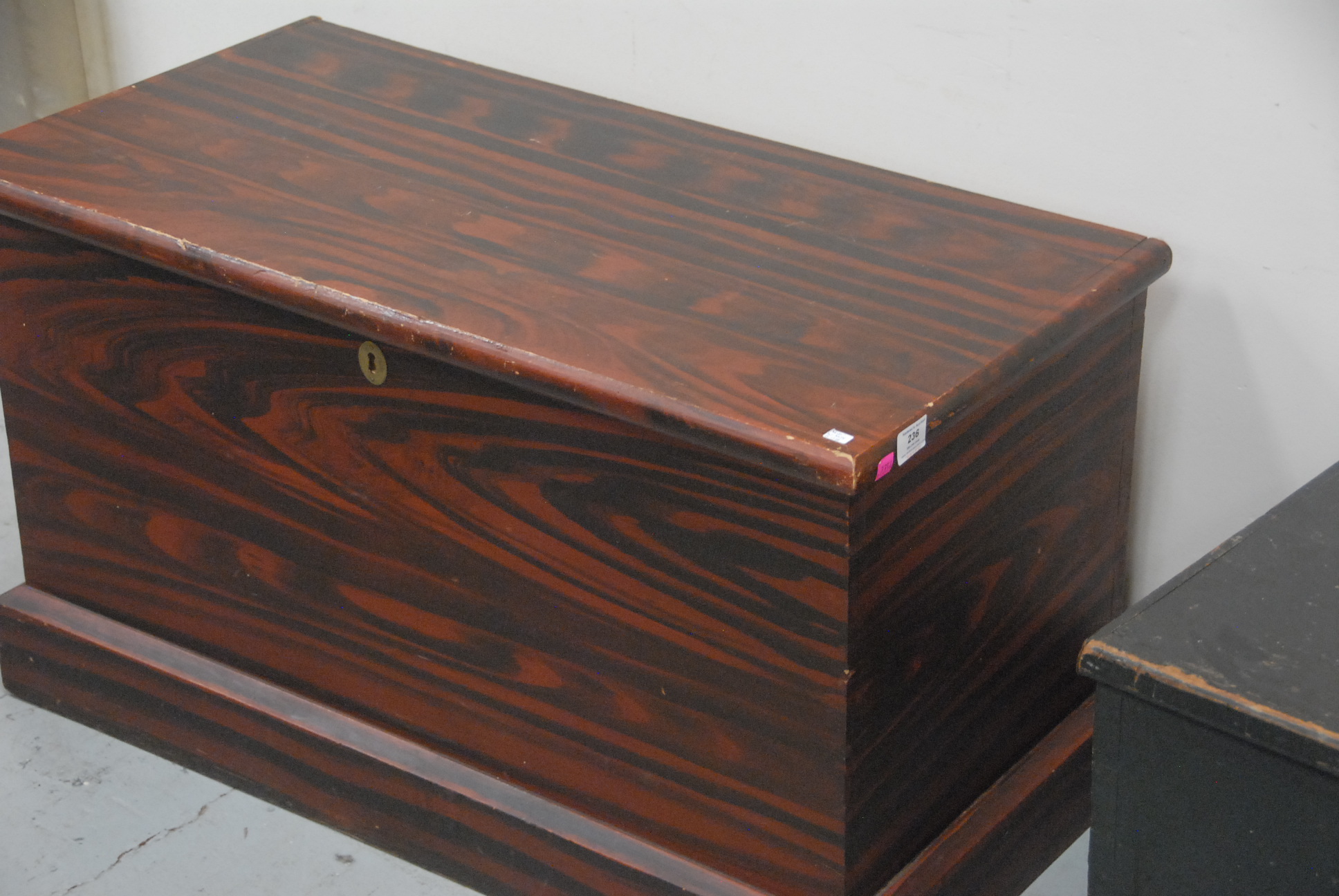 Lift top blanket chest in original grain paint. ht. 21 in. wd. 35 1/4 in.