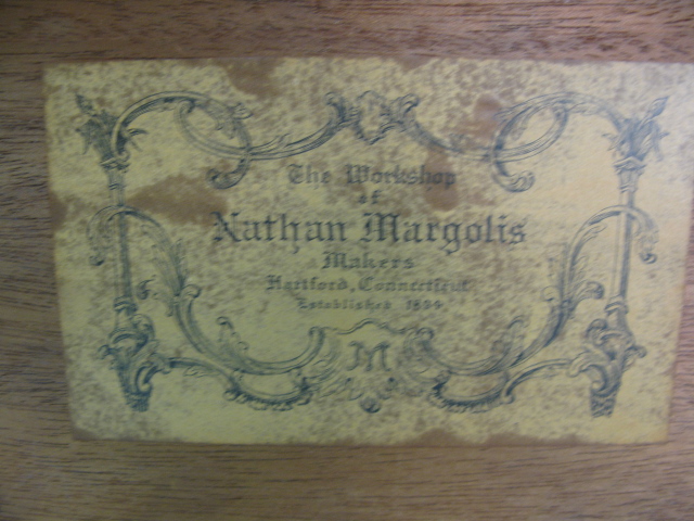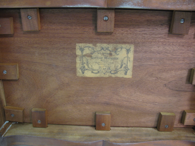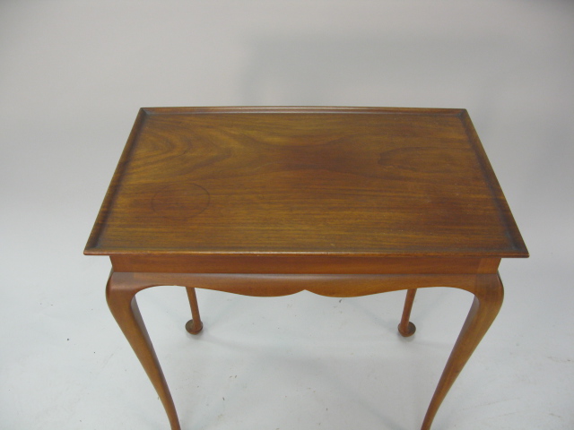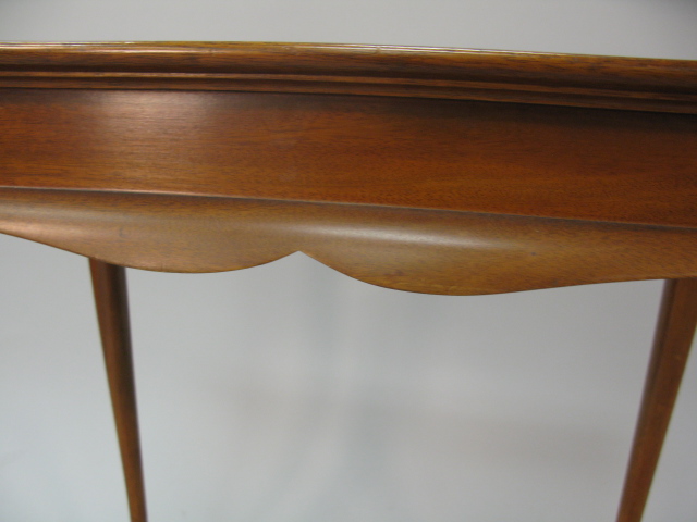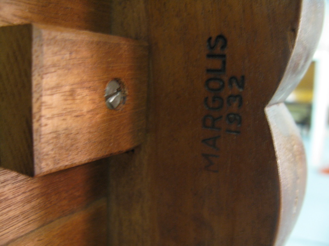 Margolis mahogany Queen Anne style tea table with dished top on cabriole legs ending in pad feet, signed Margolis 1932, plus paper label.