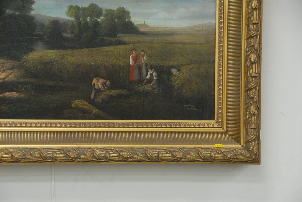 Reproduction painting of river and pheasants, 24 x 36. Provenance: Estate of Judy Gengras McDonough of West Hartford, CT.