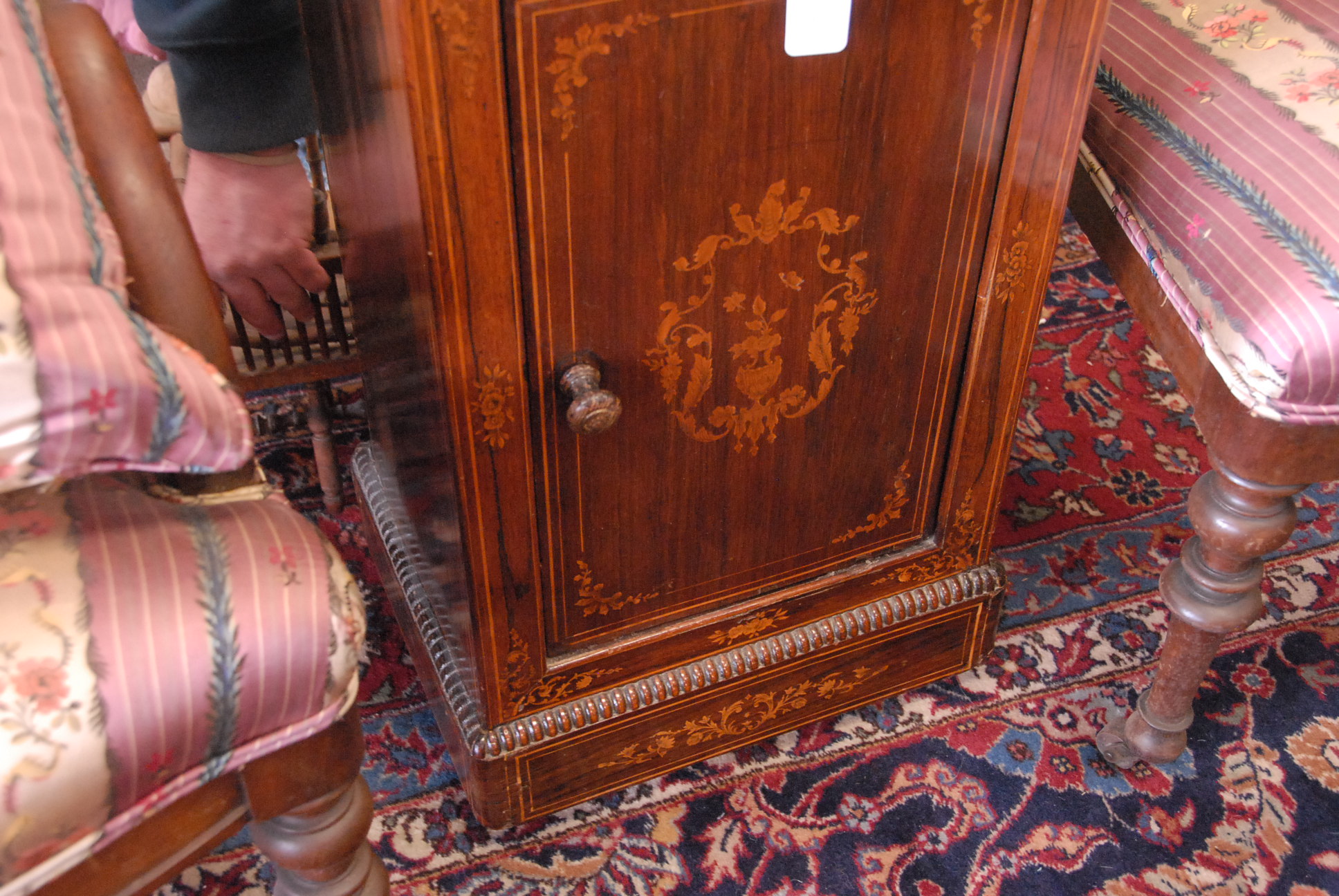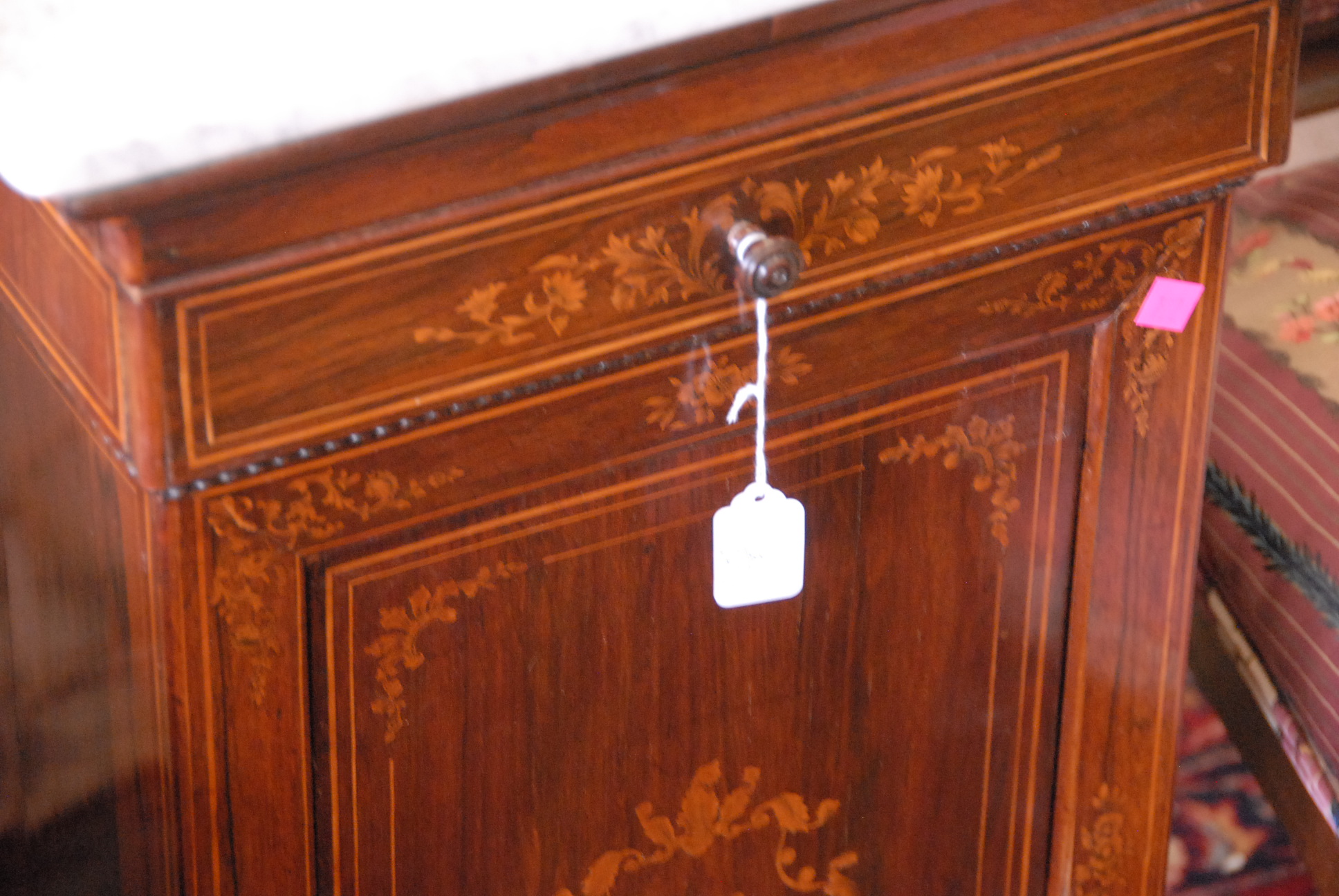 Rosewood inlaid half commode with marble top.