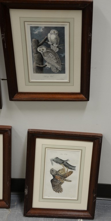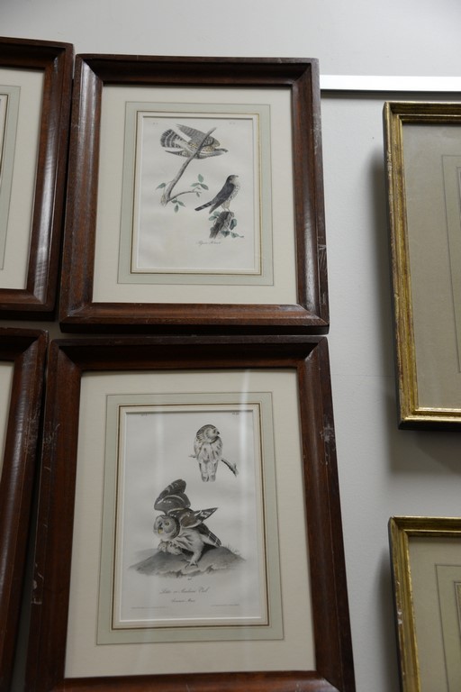Set of six Audubon prints, Drawn from nature by J.J. Audubon, printed by J.T. Bowen, Philadelphia, hand colored lithographs, Great Cinereous Owl Pigeon Hawk Barred Owl The Night Owl Snowy Owl Little/Acadian Owl, sight size 9 1/2 x 6 Provenance: Property from Credit Suisse’s Americana Collection