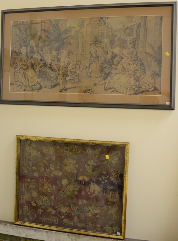 Three framed pieces to include two French needlepoint embroideries and a 19th century needlepoint, 20 x 25, ss 17 x 35, and 18 x 15. Provenance: Estate of Arthur C. Pinto, MD