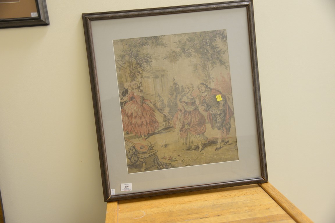 Lot 236: Three framed pieces to include two French needlepoint embroideries and a 19th century needlepoint, 20 x 25, ss 17 x 35, and 18…