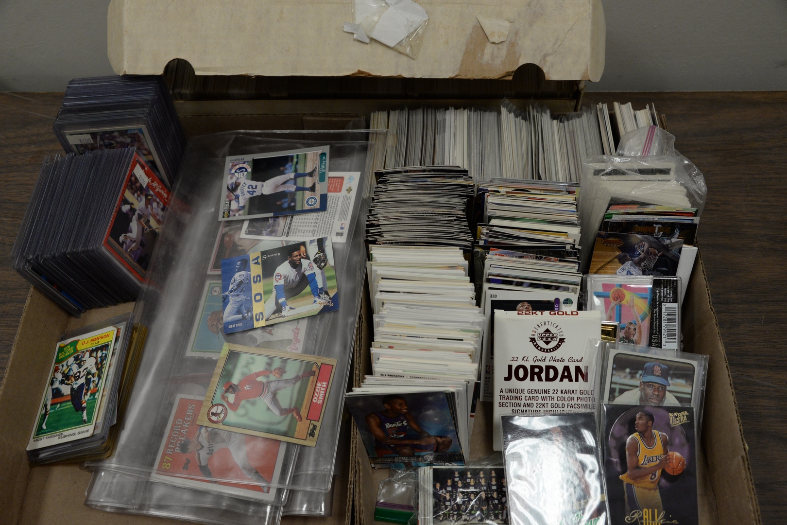 Two tray lots of trading cards to include Kobe Bryant Rookie, Tim Duncan Rookie, graded Michael Jordan cards along with approximately thirty Mark McGuire cards and miscellaneous 1980’s and 1990’s baseball and basketball cards.