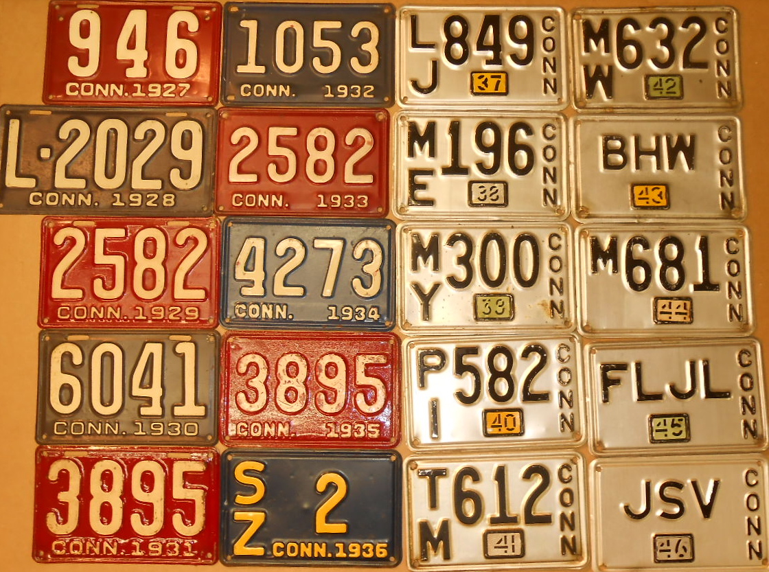 Eighty one CT plates from 1905 – 1990, incl 3 early single #9 porcelains, missing 1961