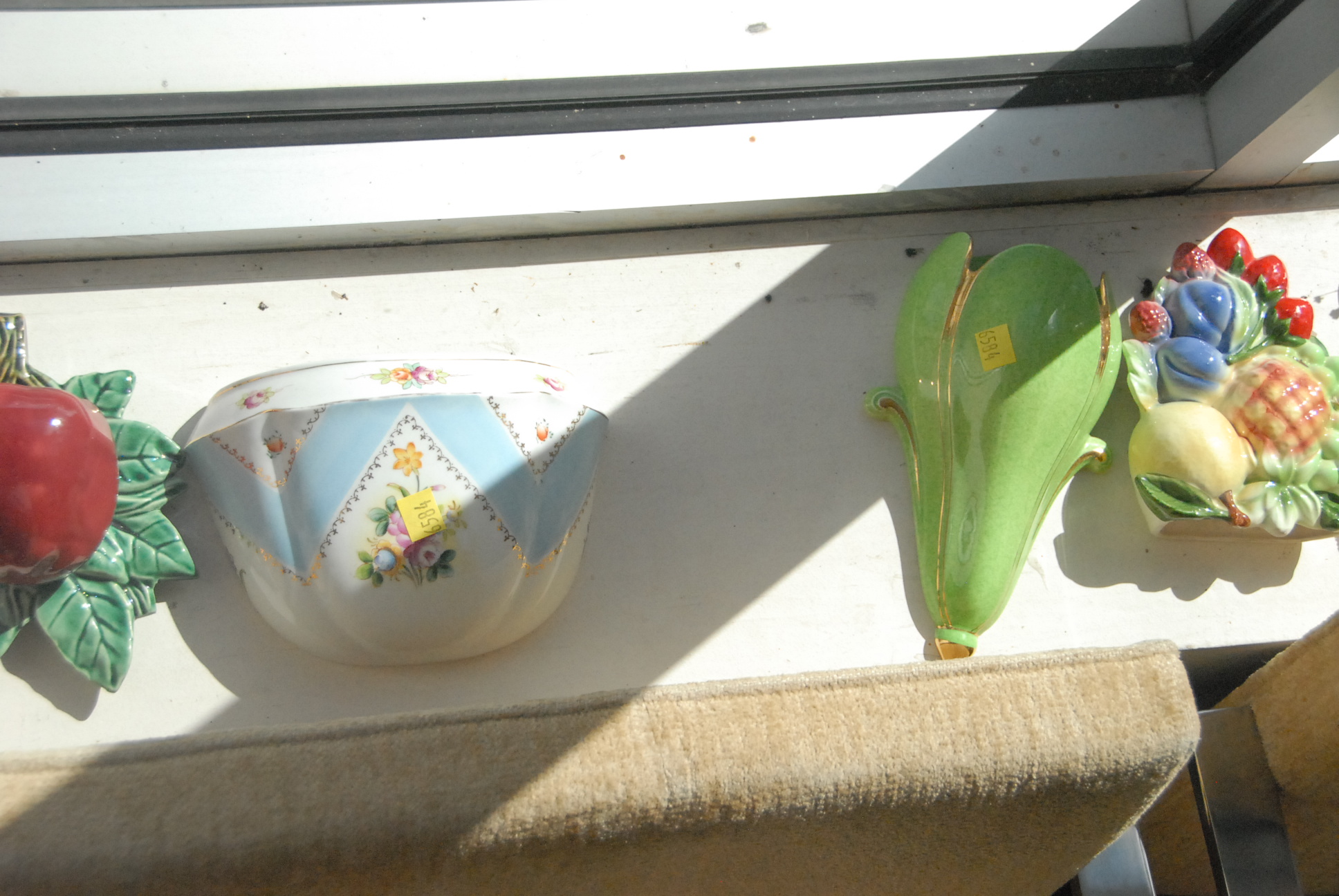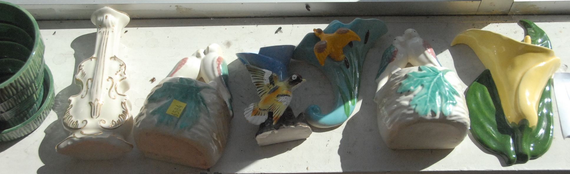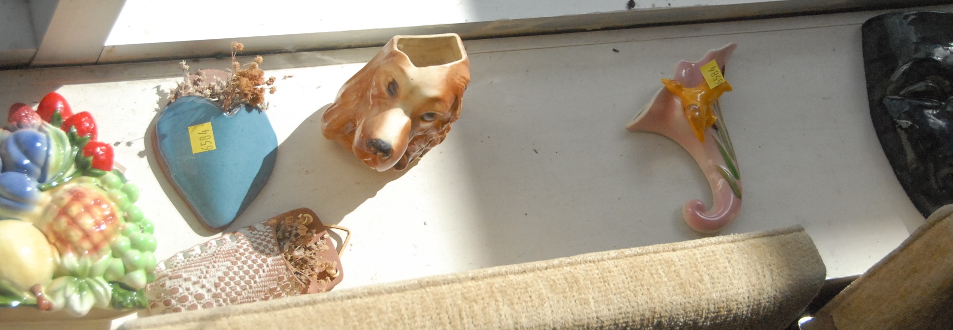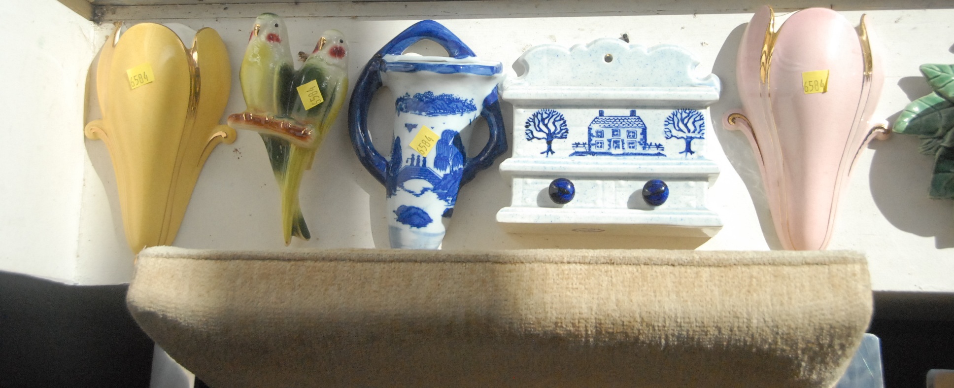 Lot 237: Fifty-five piece lot of pottery and ceramic wall pockets including one Roosevelt, Roseville, and McCoy.