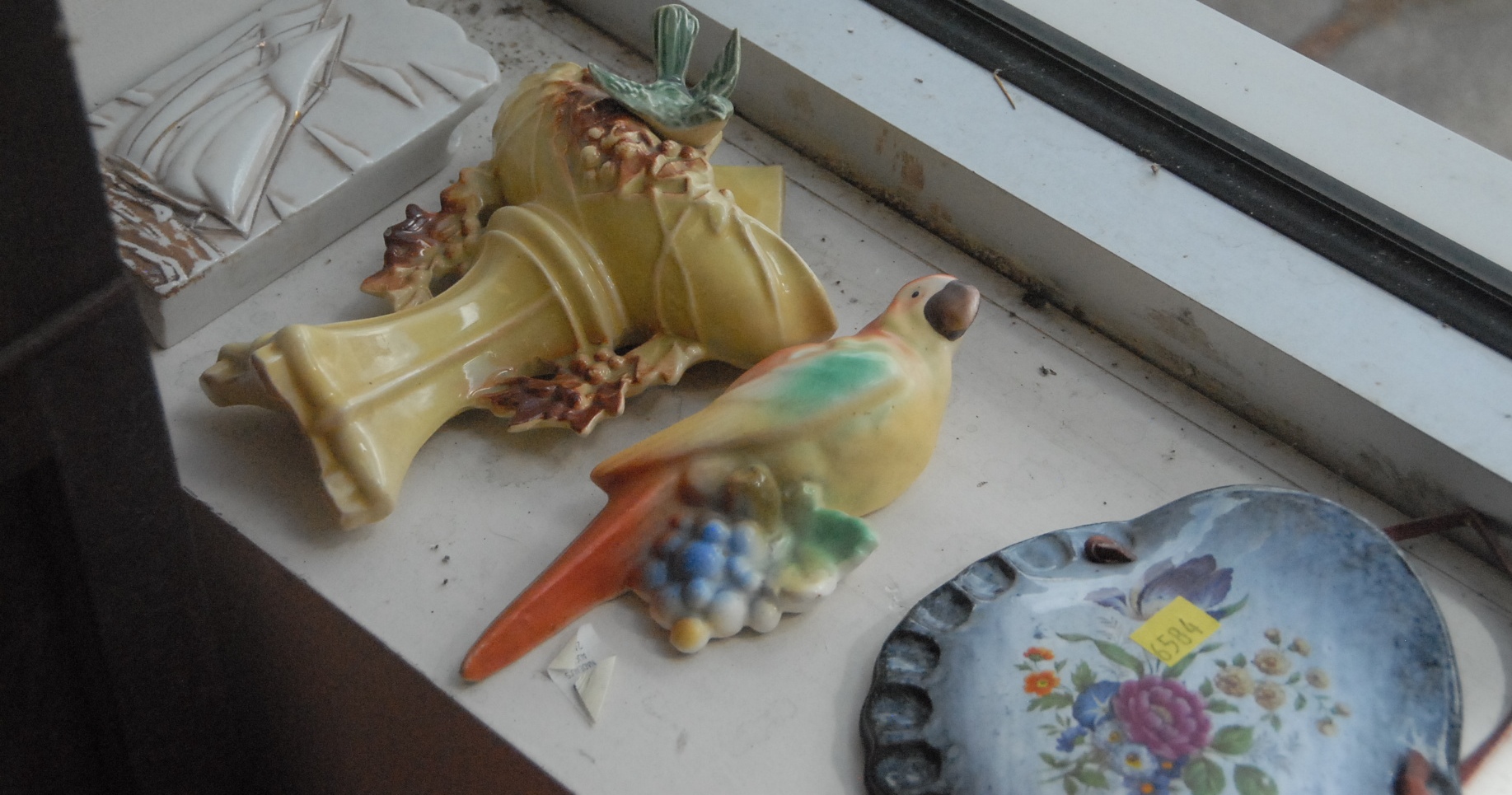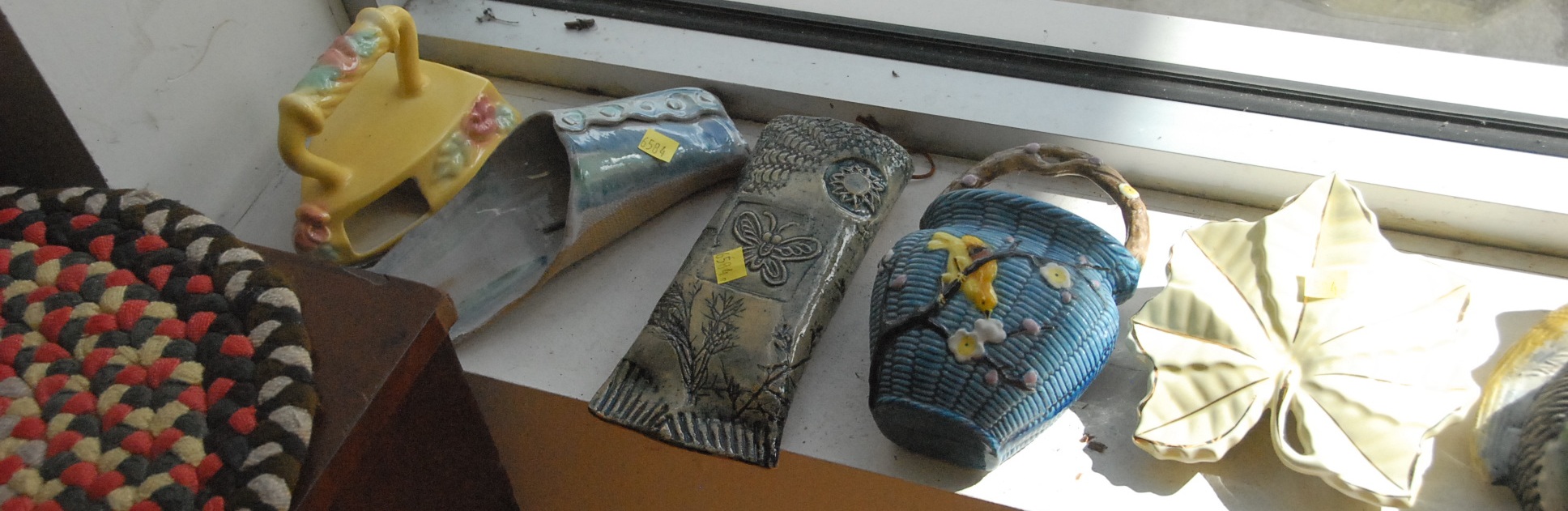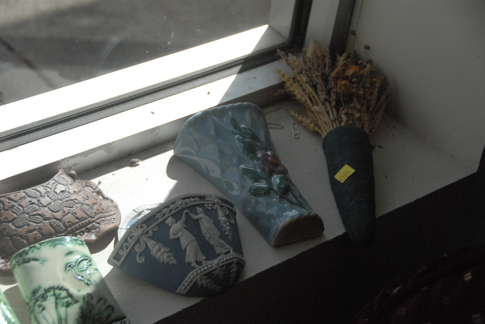 Lot 237: Fifty-five piece lot of pottery and ceramic wall pockets including one Roosevelt, Roseville, and McCoy.