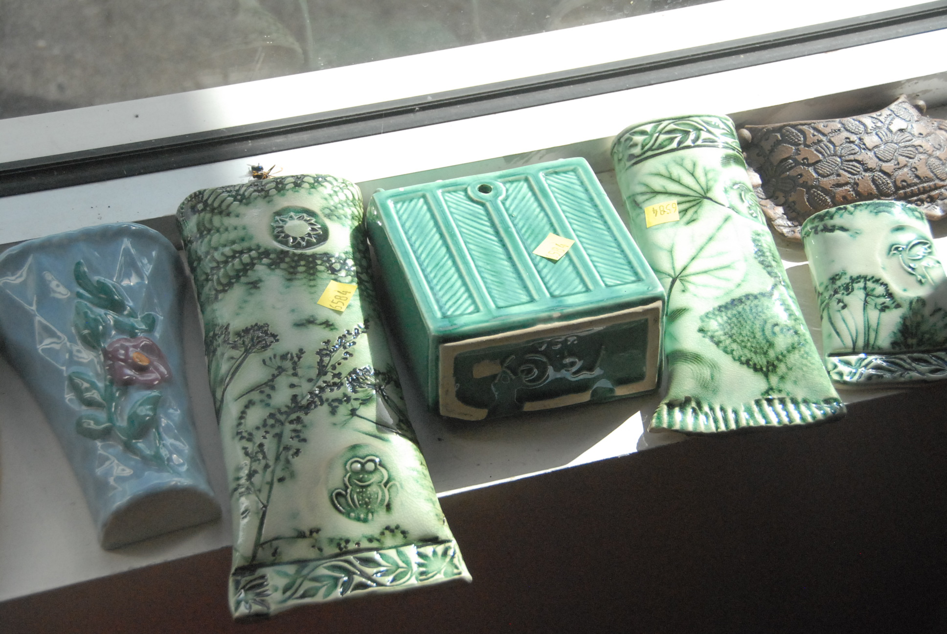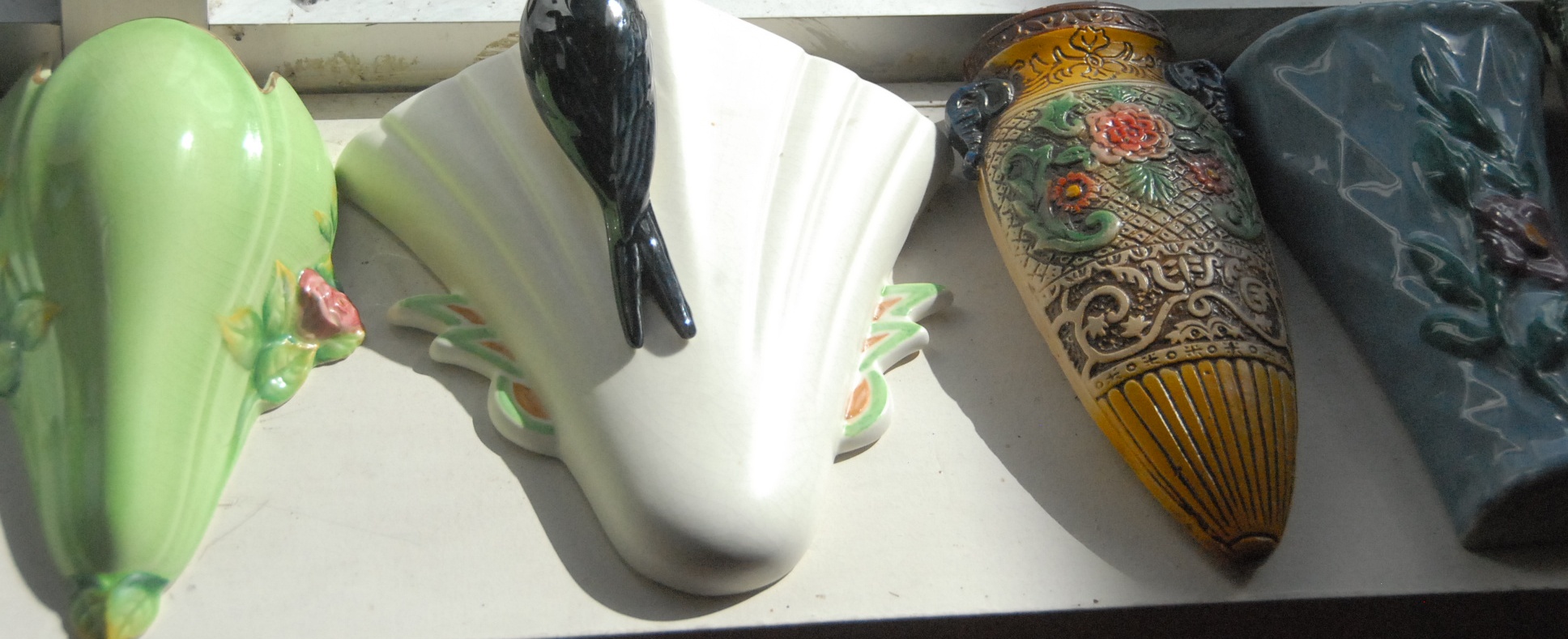 Fifty-five piece lot of pottery and ceramic wall pockets including one Roosevelt, Roseville, and McCoy.