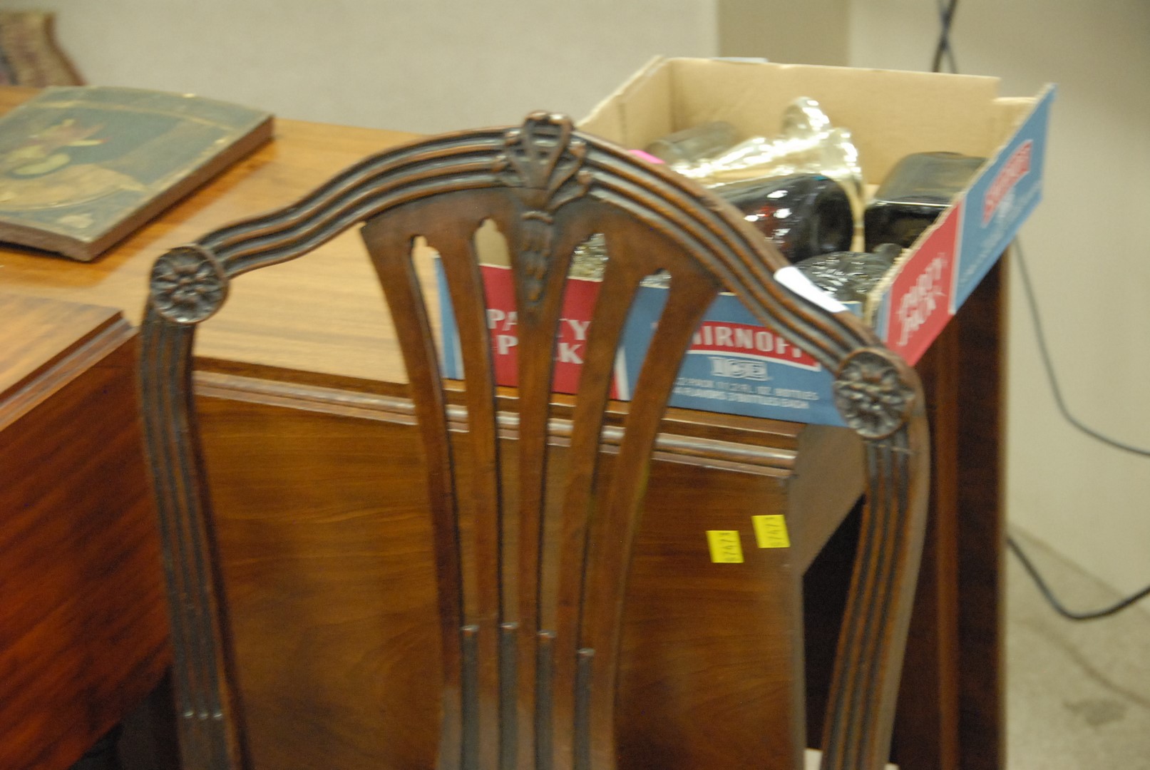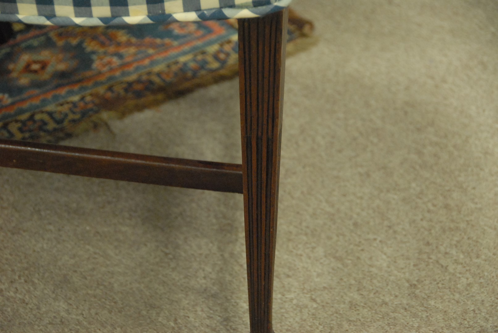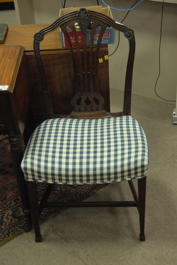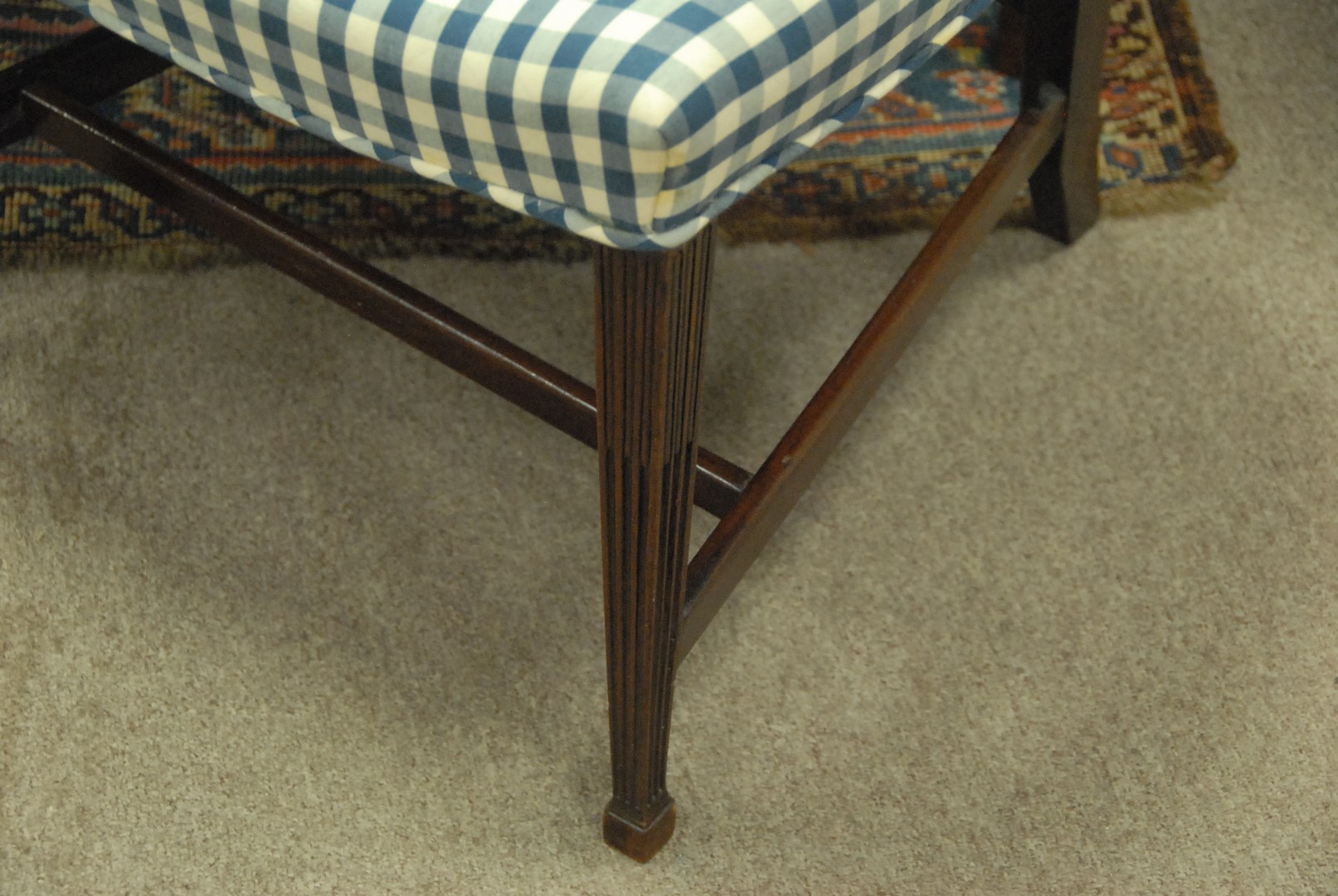 Georgian mahogany side chair with stop fluted legs and stretcher base back repaired.