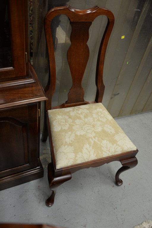 Hitchcock cherry nine piece dining set, Queen style chairs and oval table with two 15 leaves and pads. table: ht. 30 in. top: 44 x 66 open: 44 x 96