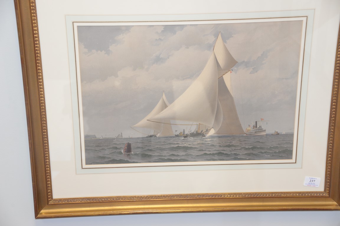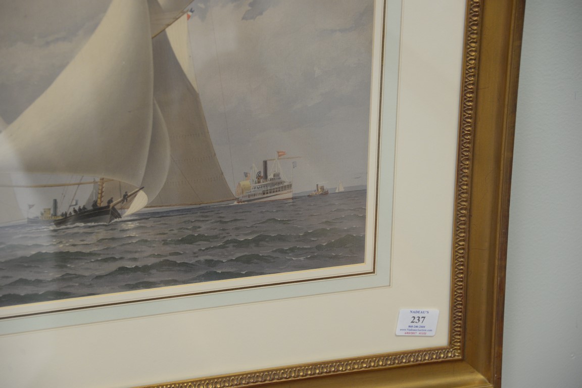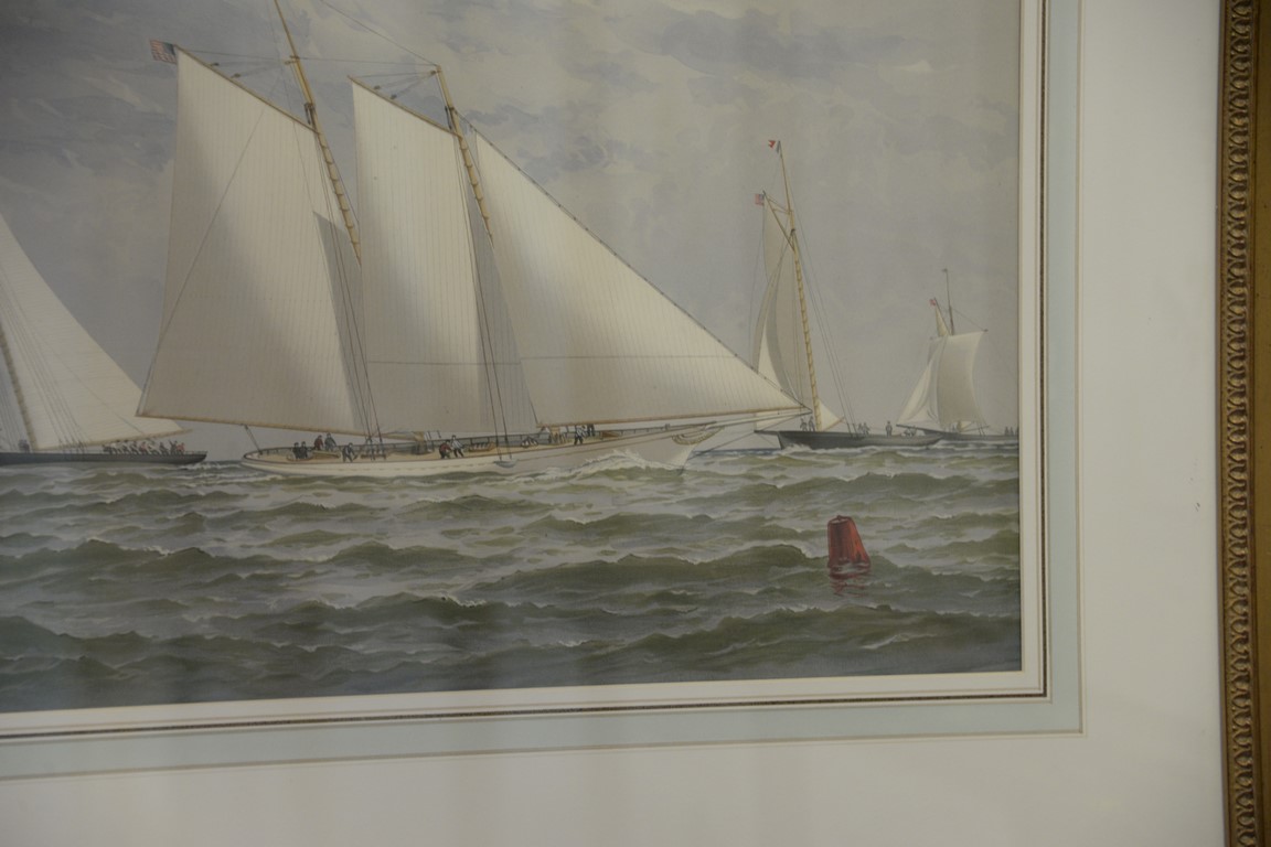 Lot 237: Pair of Fred S. Cozzens colored lithographs including For the America’s Cup, The Start and The Early Racers, signed lower left i…