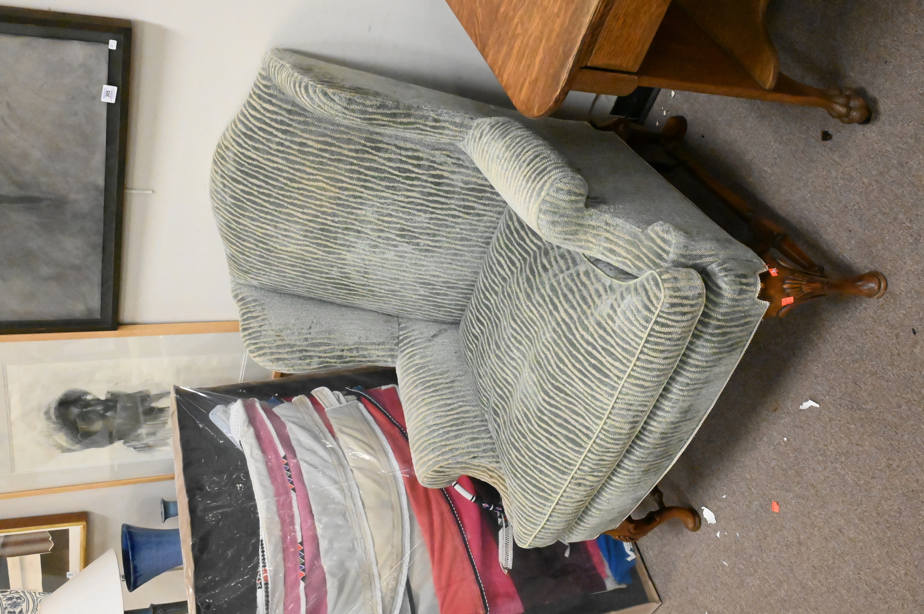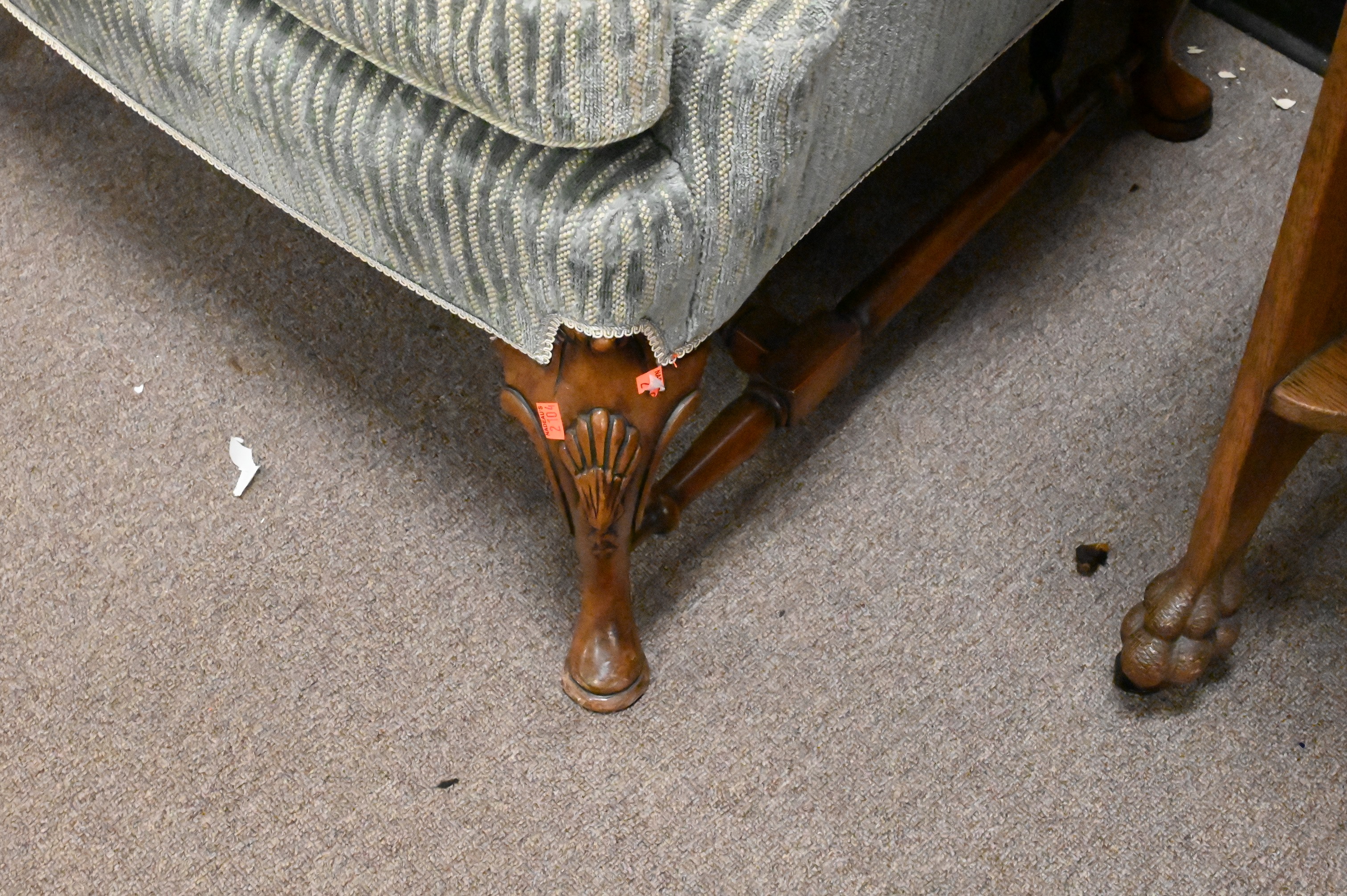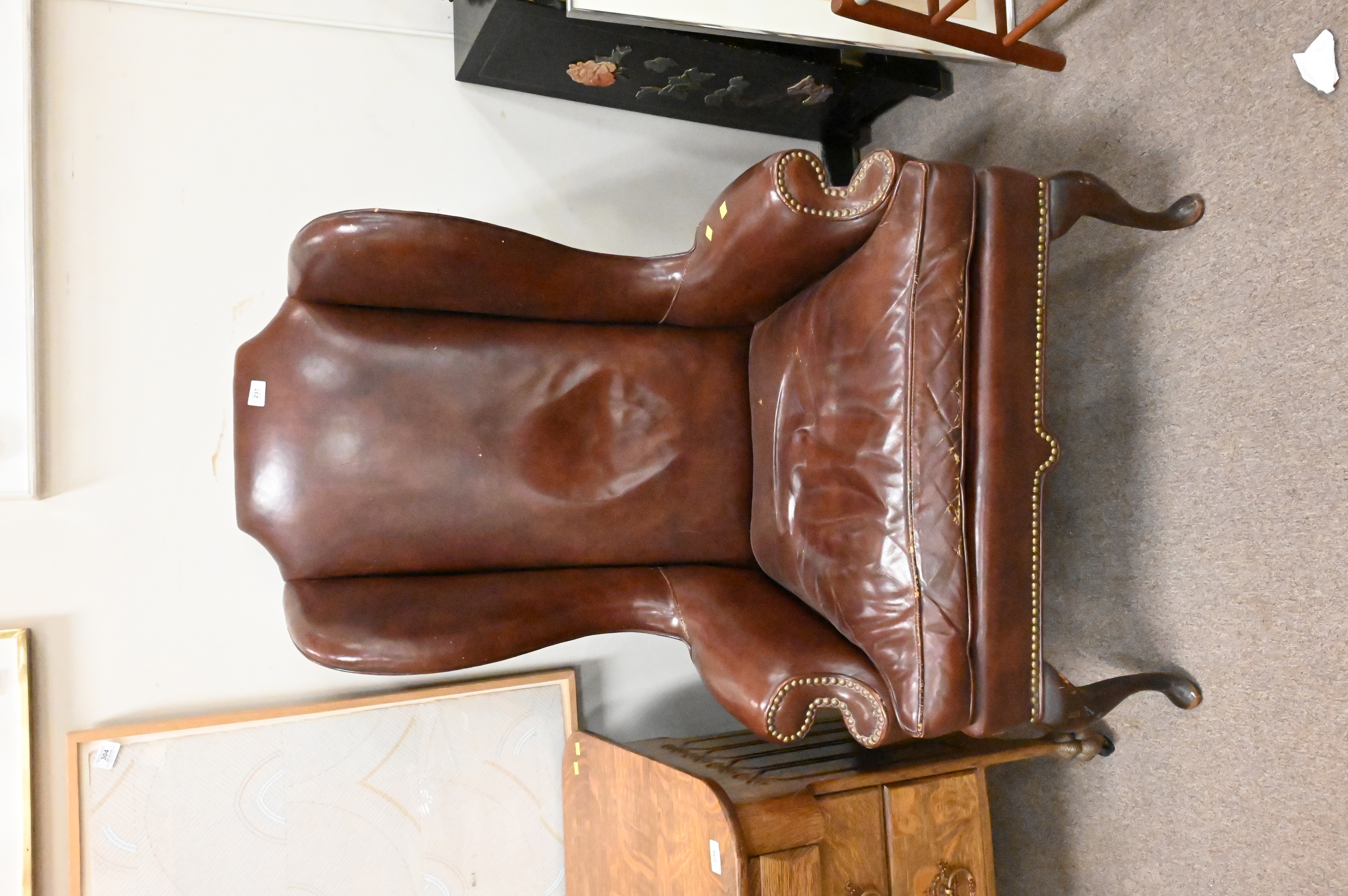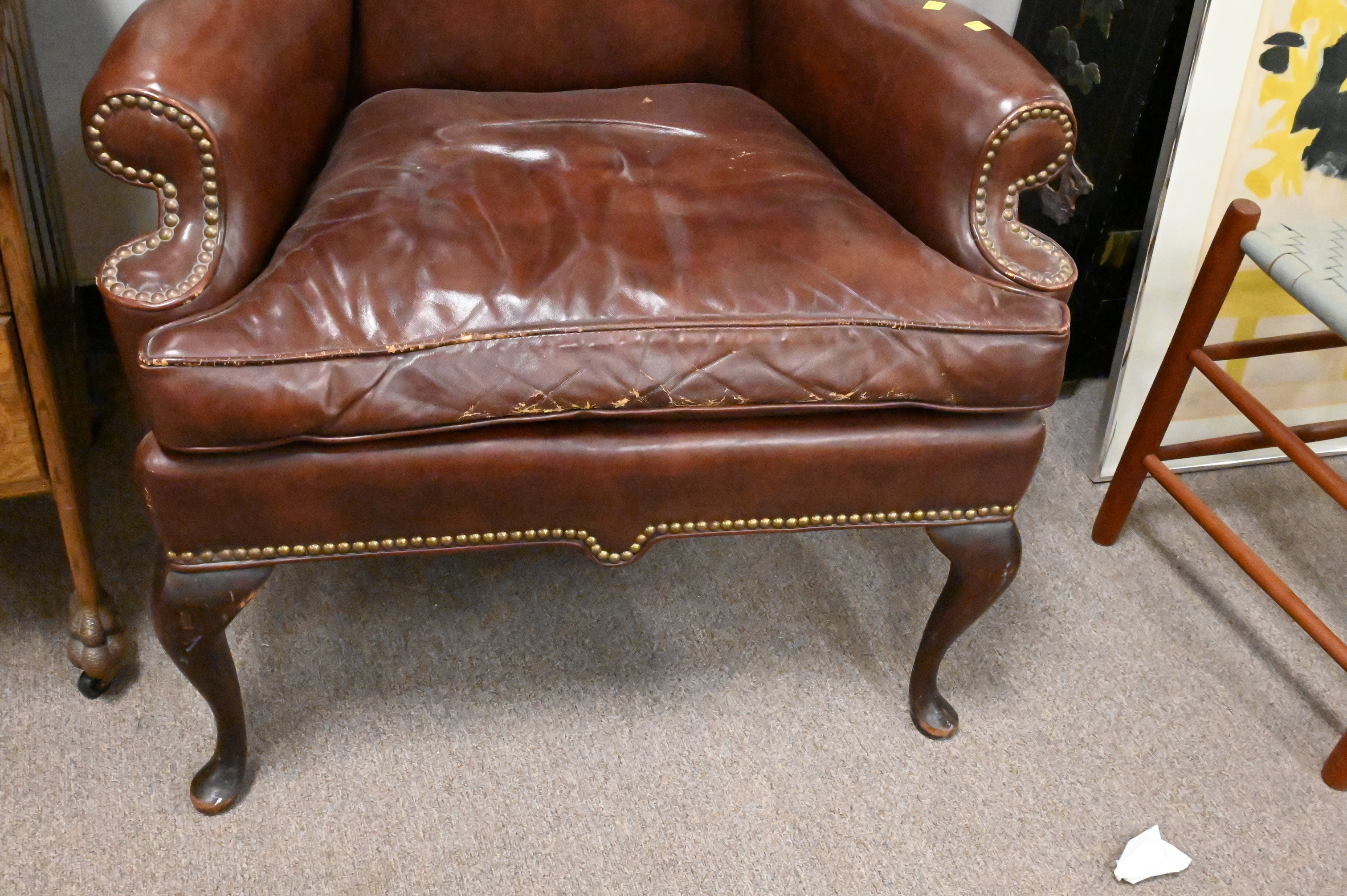 Lot 237: Queen Anne Style Leather Upholstered Wing Chair along with Queen Anne Style Wing Chair