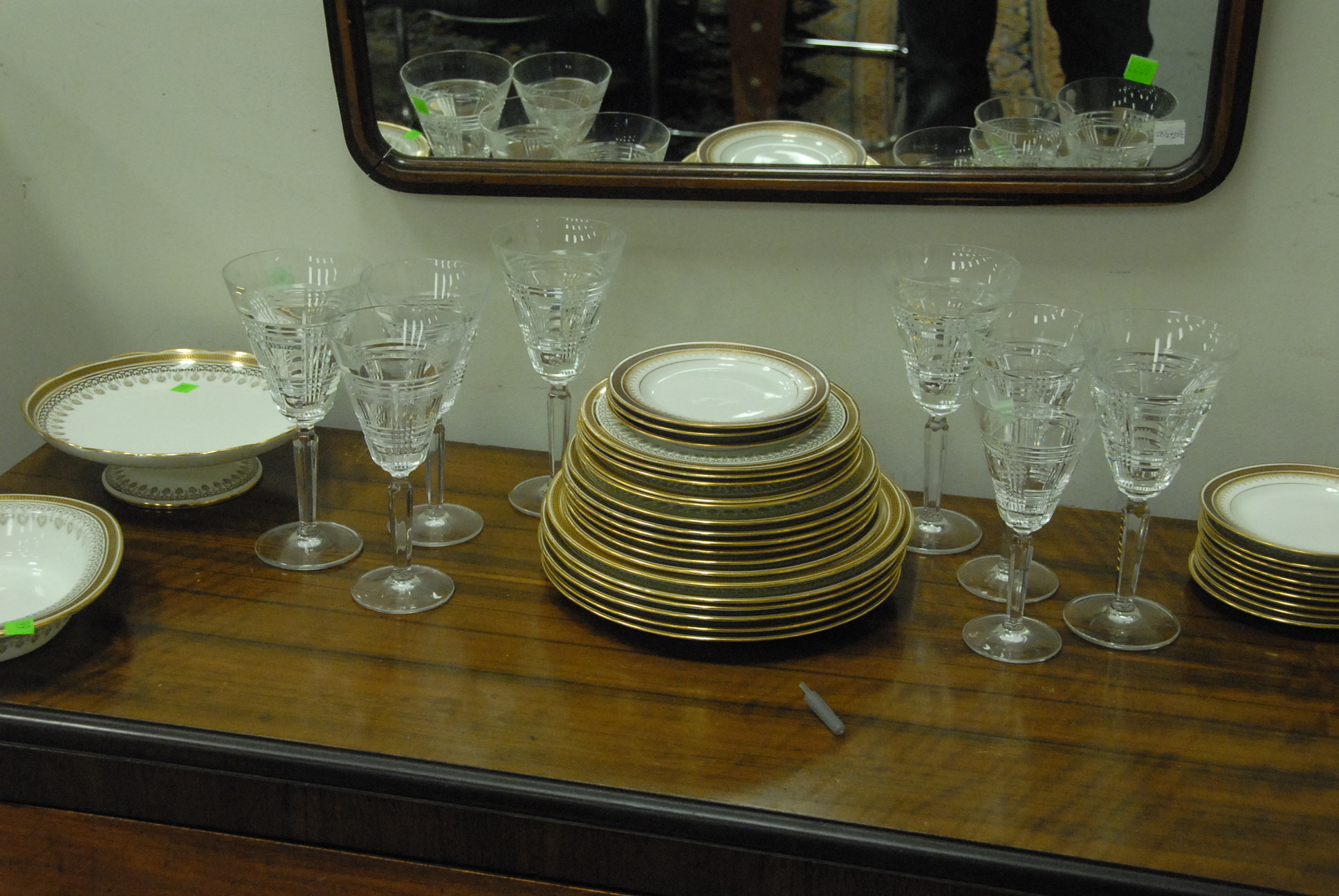 Lot 237: Set of Cauldron china dinnerware with gold greek key design border including dinner plates, luncheon plates, dessert plates, bread p…