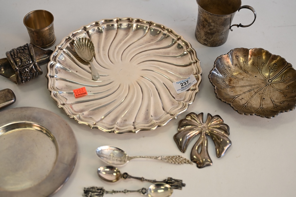 Lot 237: Sterling Silver Lot, to include two Tiffany pieces including two pieces of jewelry, 38.5 t.oz. Provenance: Waterfront Estate, Stamford, CT.
