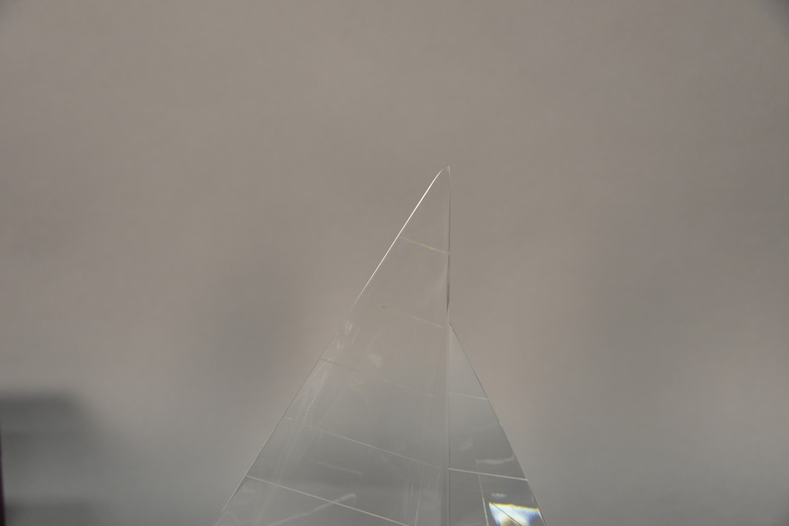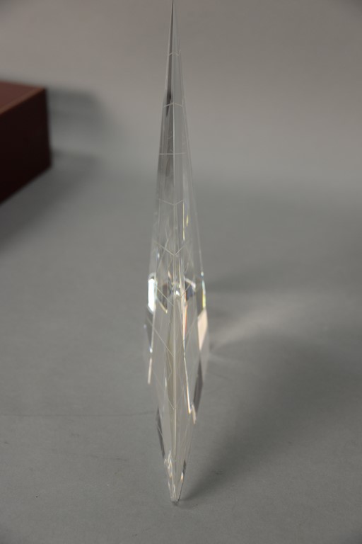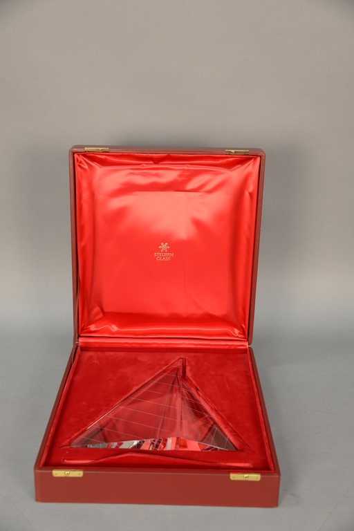 Lot 237: Steuben Peter Aldridge 1987 Sailing crystal sculpture, last retail 8,650, in original box. ht. 13in.