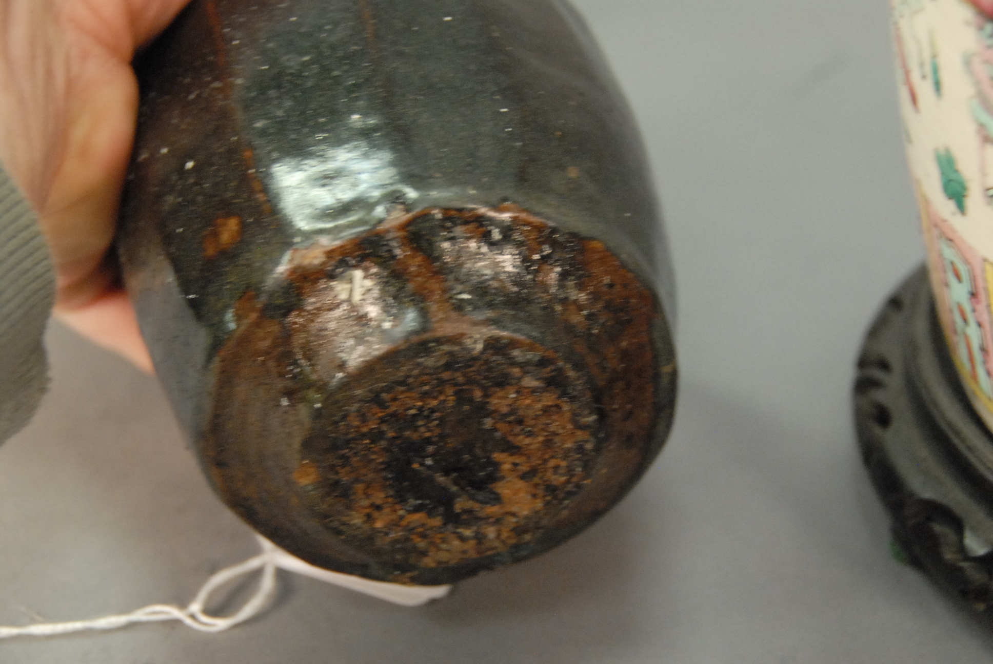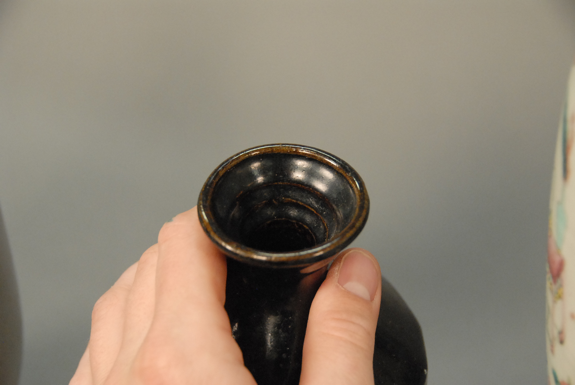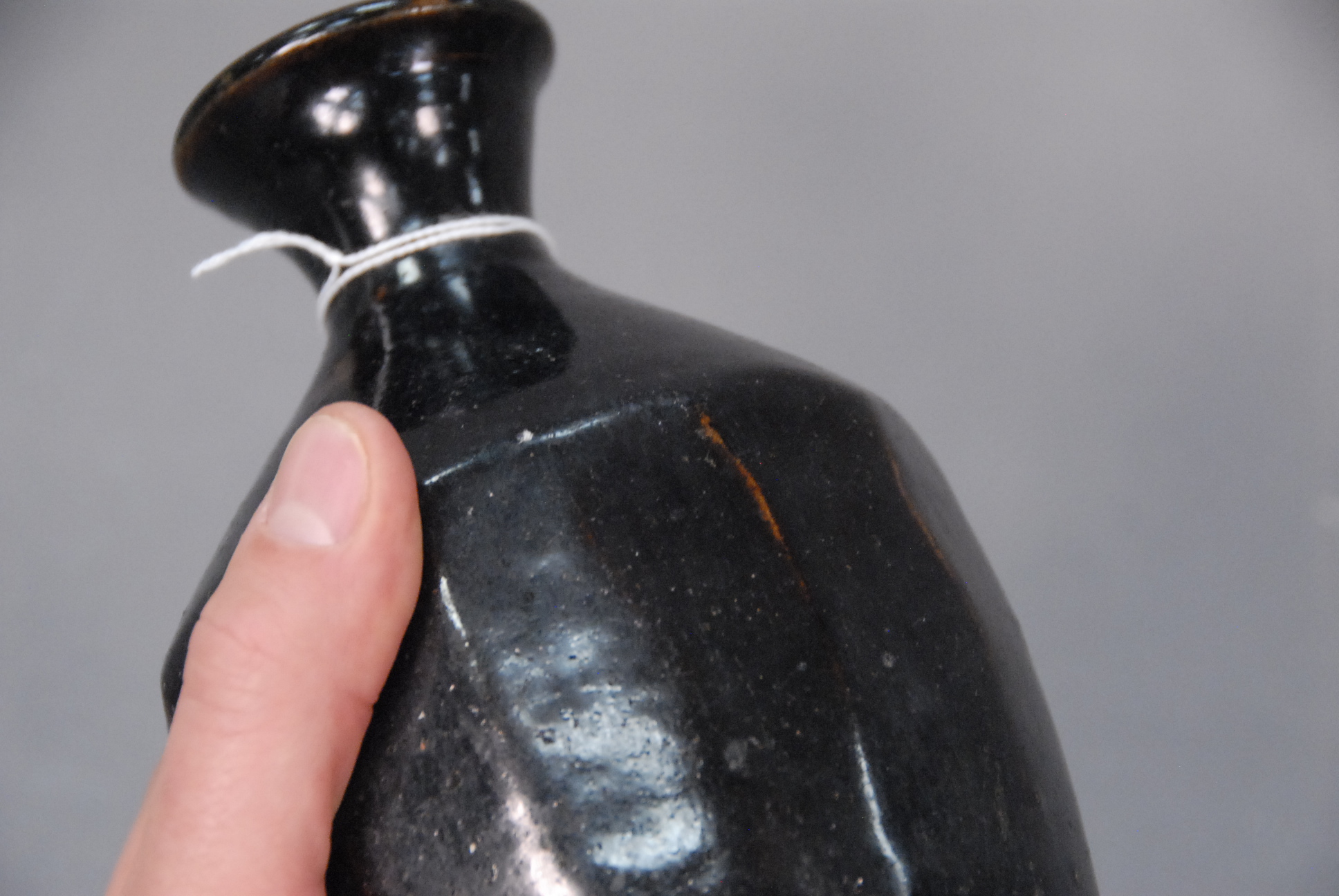 Lot 237: Stoneware monochrome lobed vase, Song Dynasty, with overall black glaze and everted rim ht. 7 1/2in.