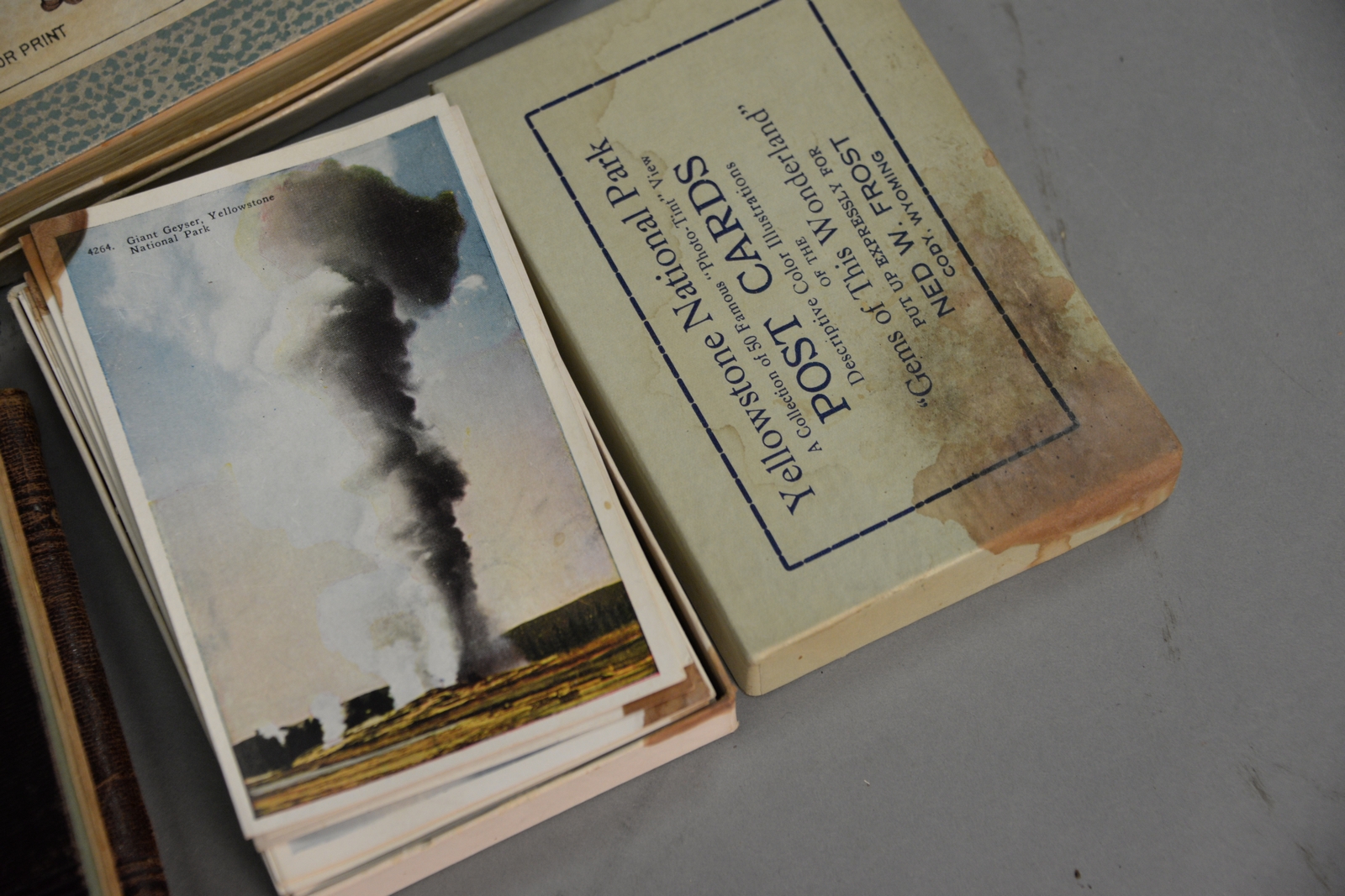 Lot 237: Three piece lot with box of Yellowstone National Park postcard, Tokaido Goju-Santsugi 53 stages, and one small book.