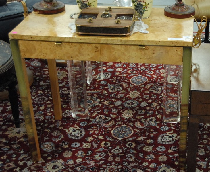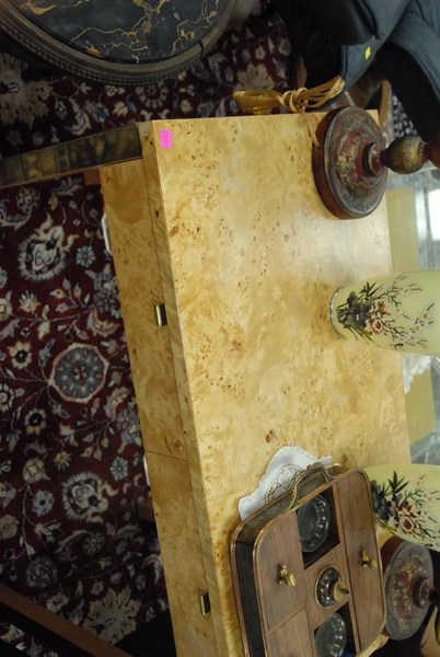 Tomlinson burled vanity, brass very good condition, ht. 28in. lg. 32in.