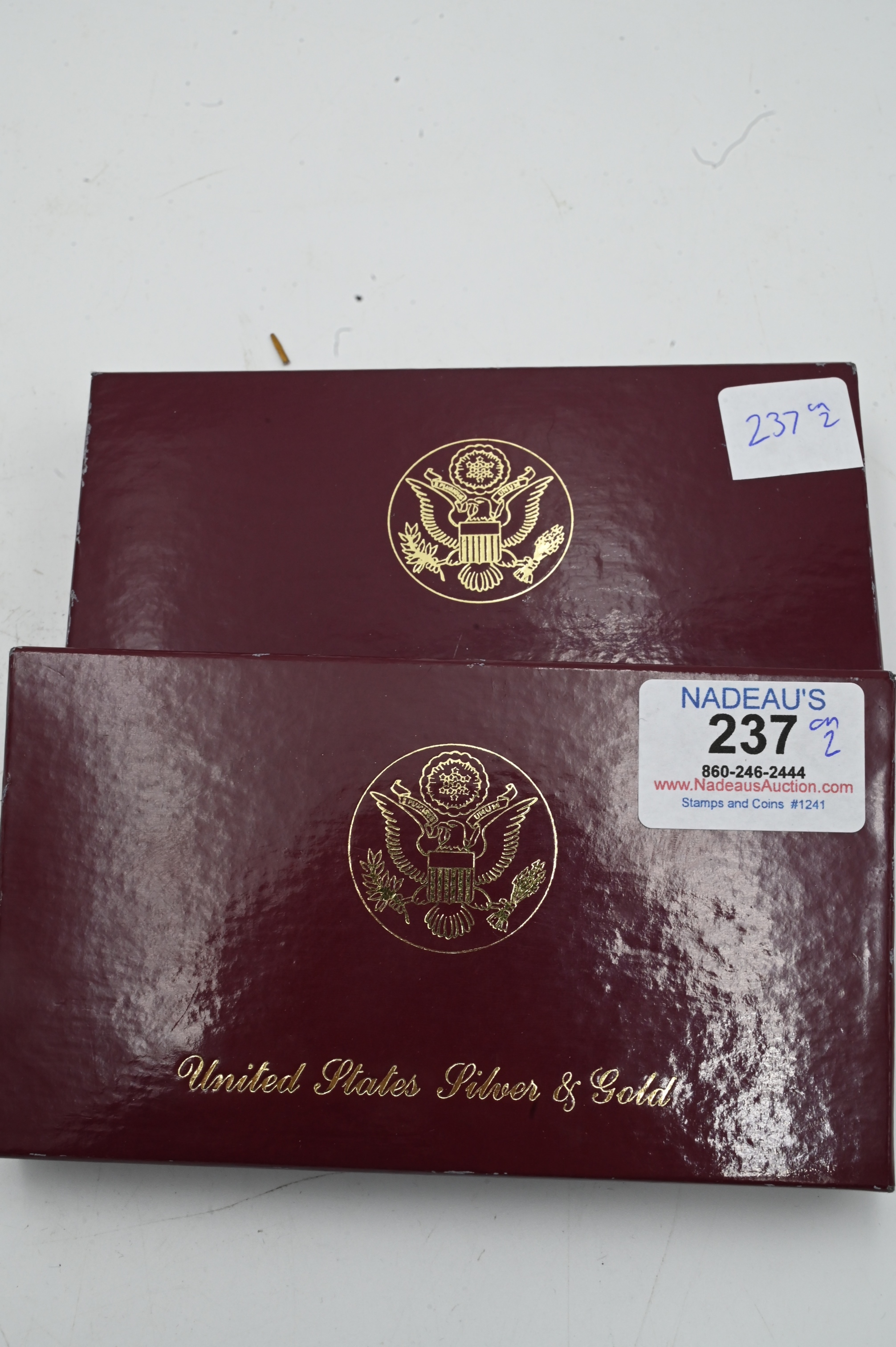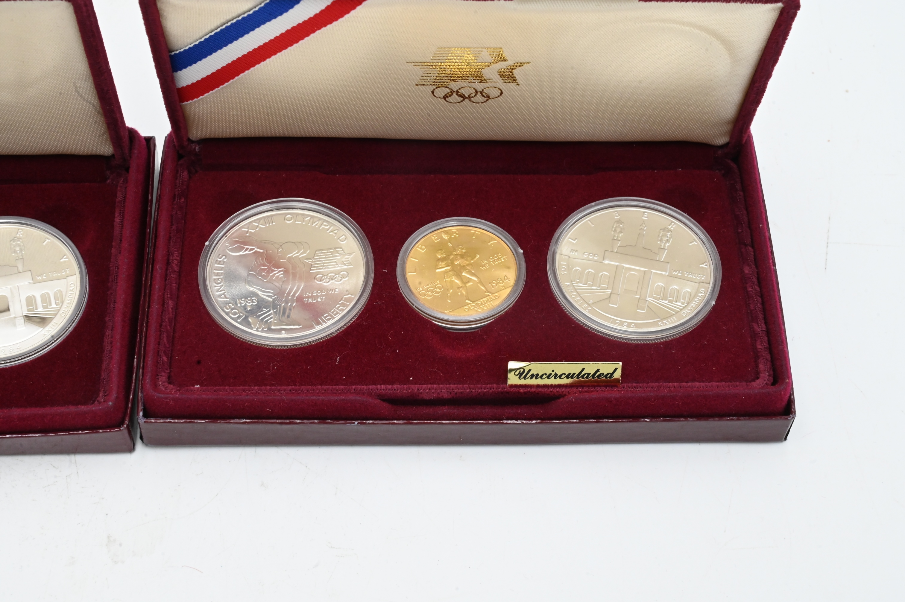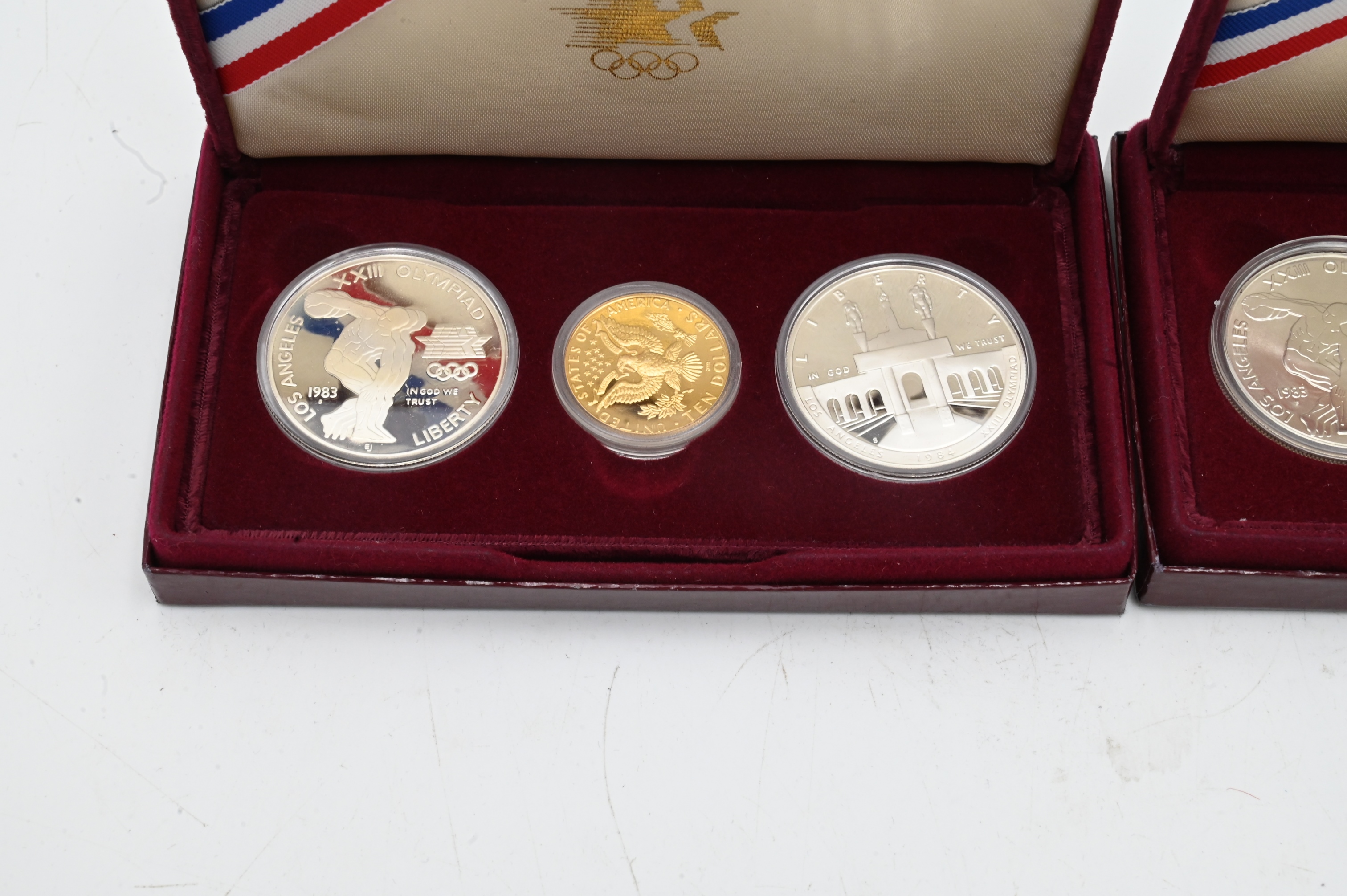 Two 1983/84 Olympic Gold Three Coin Sets, with one $10 Proof gold and $1 silver and half dollar plus one 1983-84 olympic three coins set in $10 gold and $1 Silver and half dollar, gold 1 t.oz total.