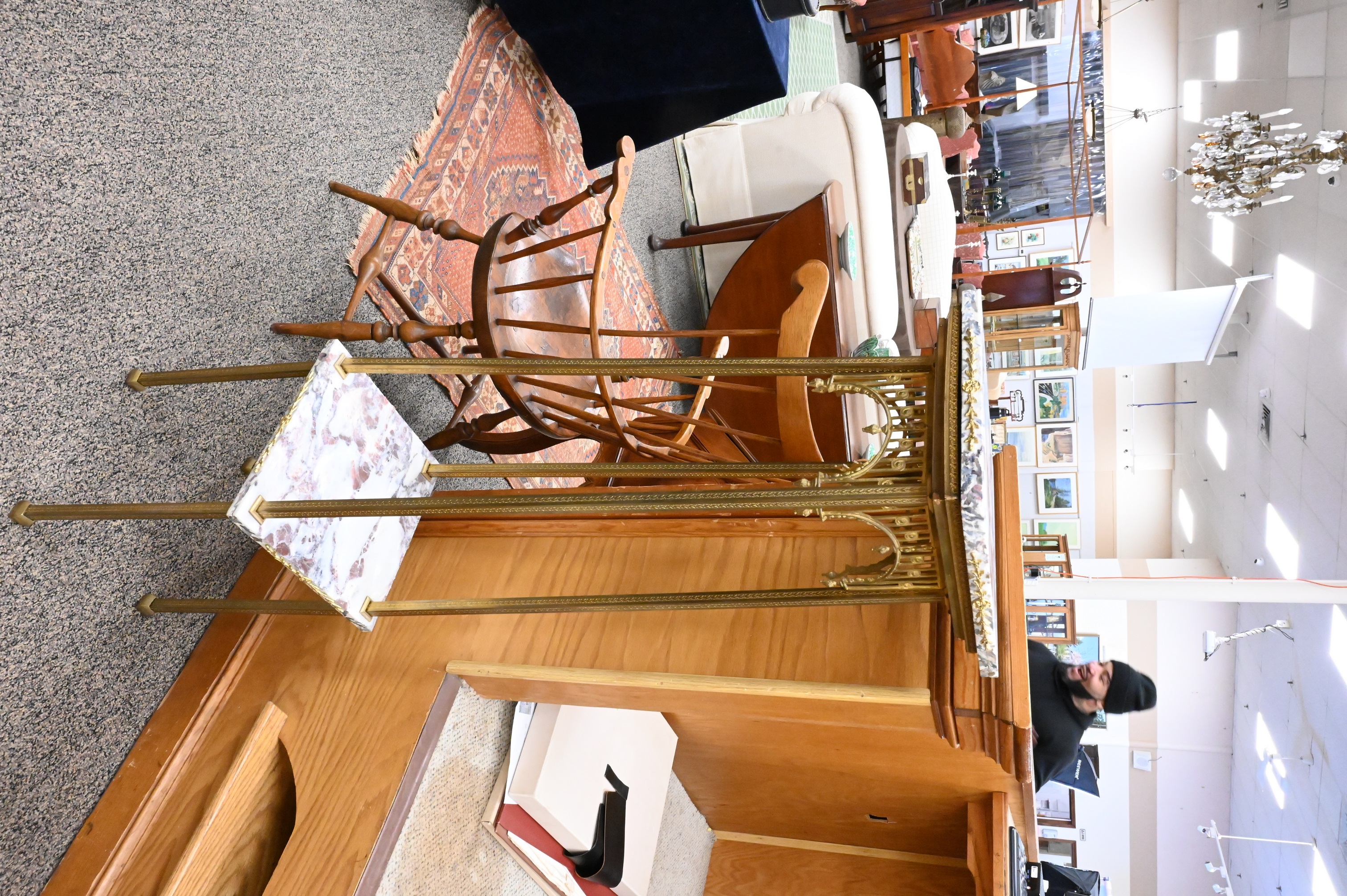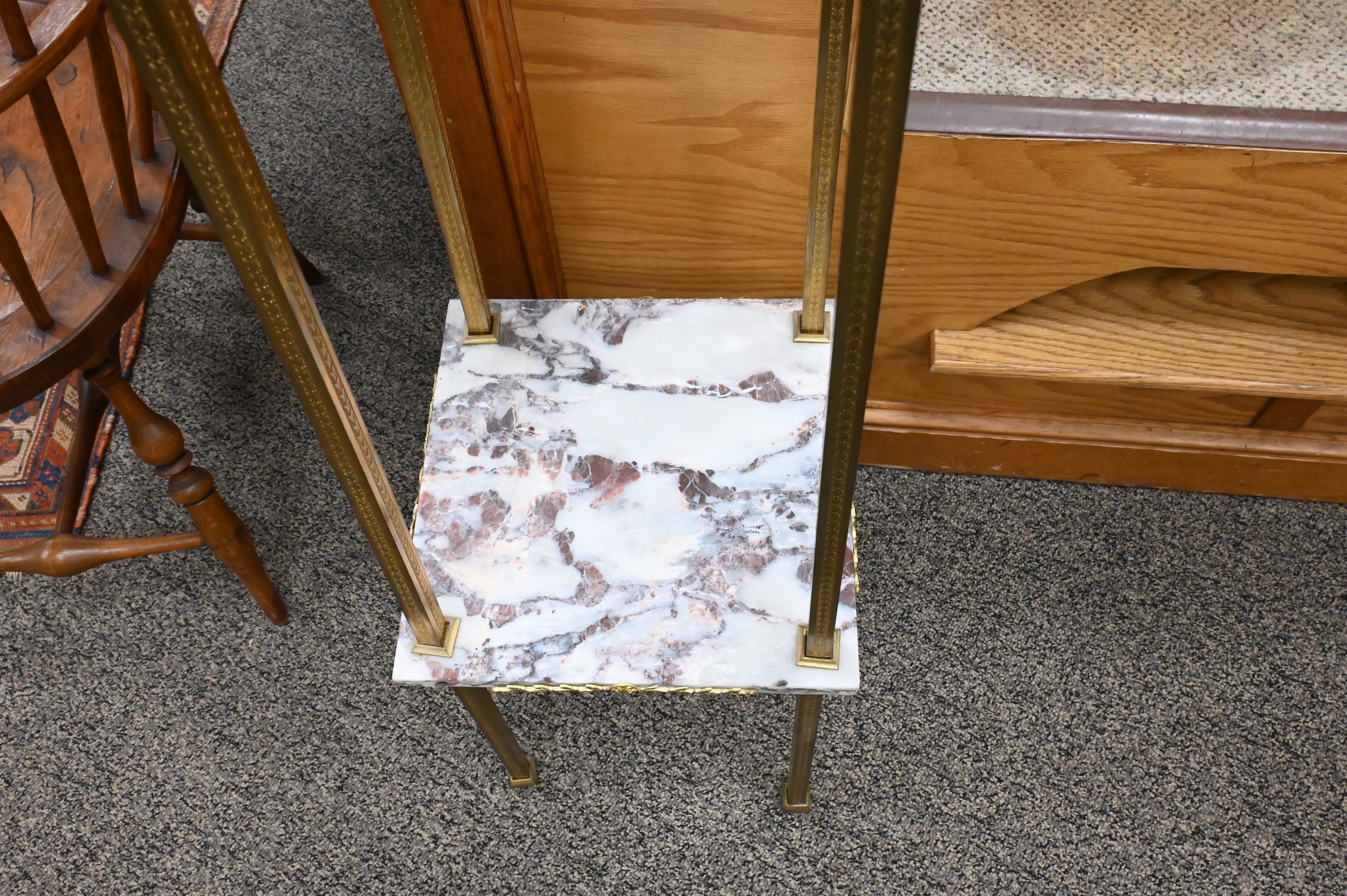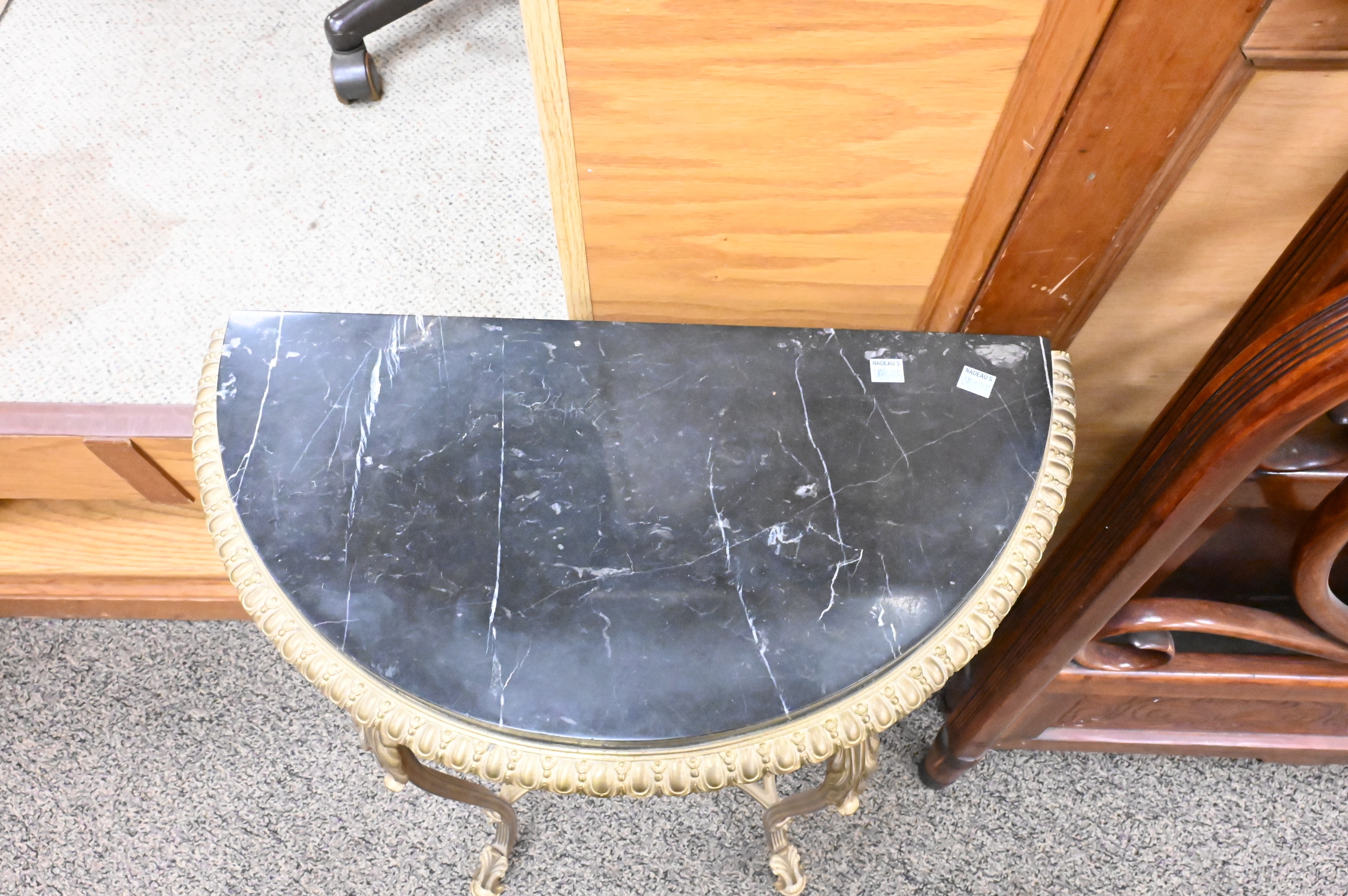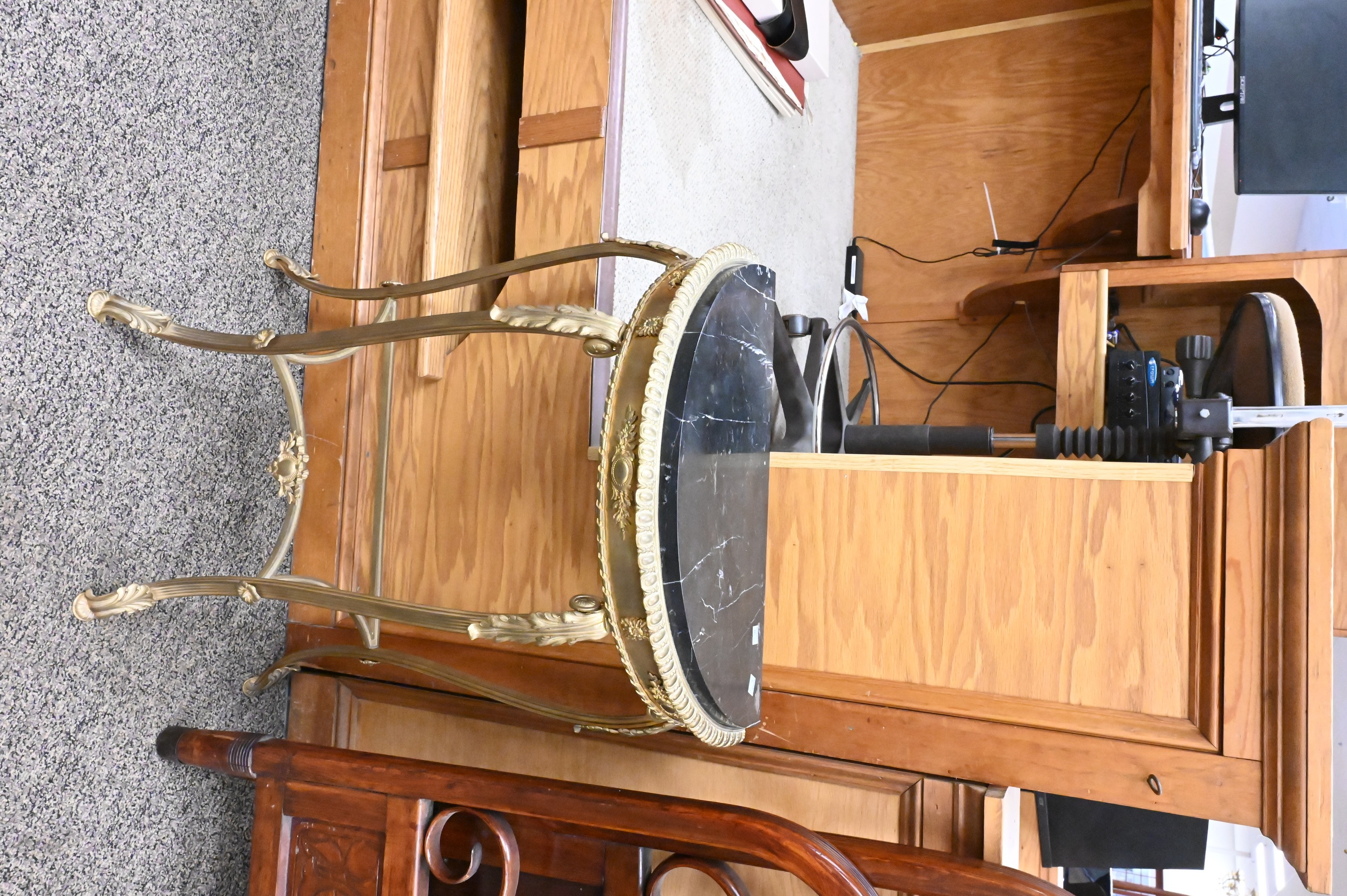 to include demilune brass table along with a two tier stand