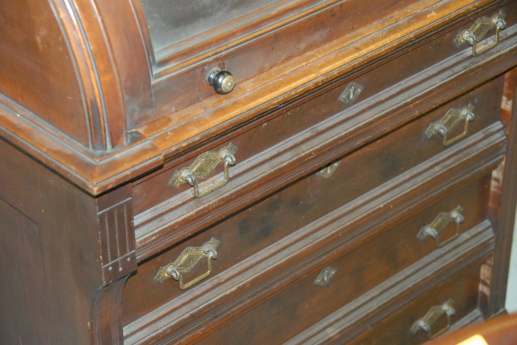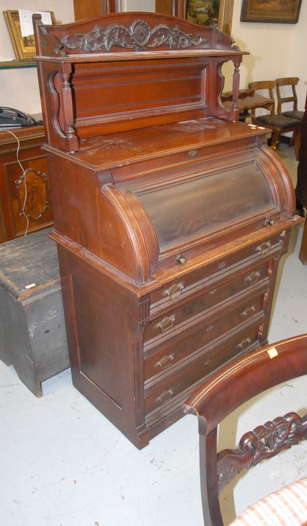 Victorian cylinder roll top lady’s desk with gallery back, ht. 57, wd. 33.