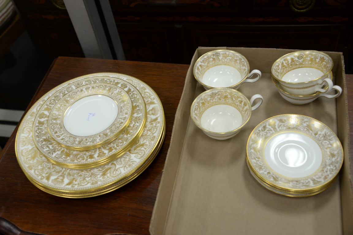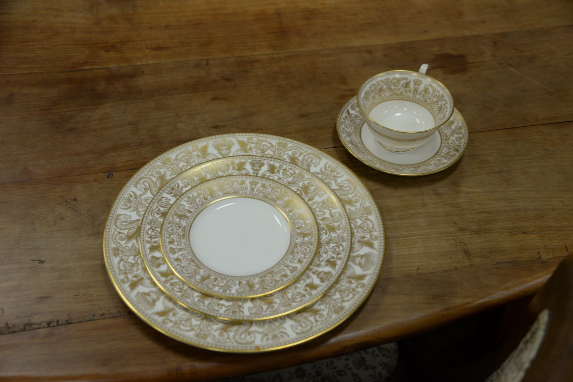 Lot 237: Wedgwood china dinner set, setting for eight including 8 cups, 8 saucers, 8 dinner plates, 8 salad plates, and 7 bread plates, 39 to…