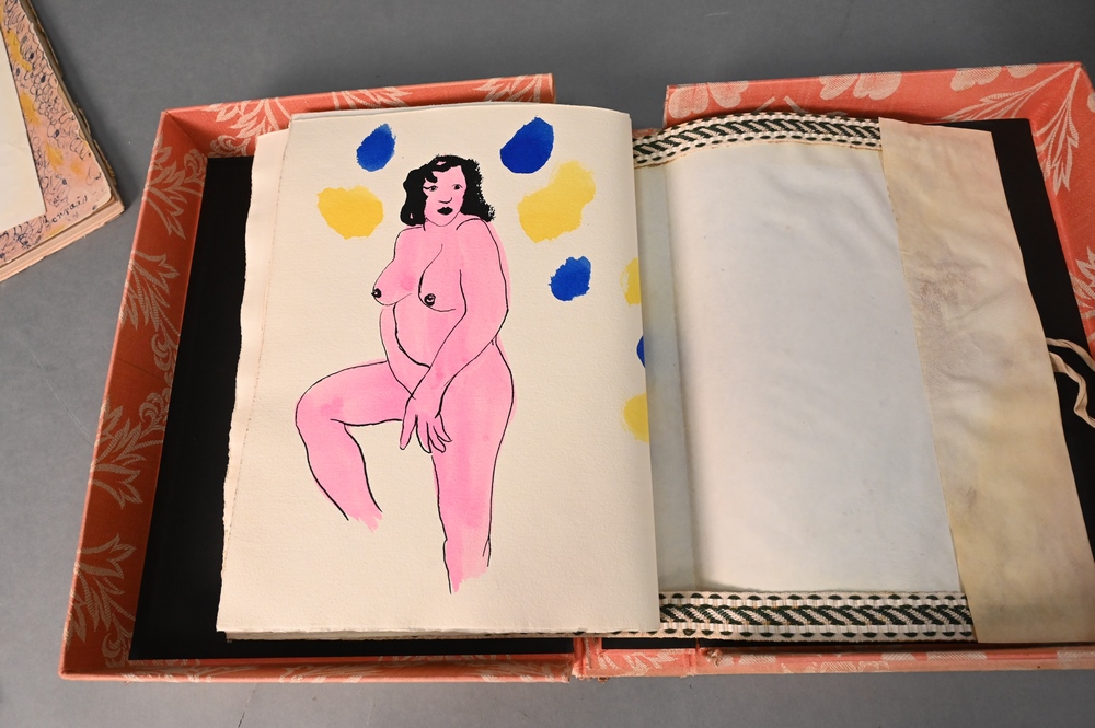 Lot 237: Yvon Taillandier L’homme, La Femme et Les Vetements image par Enrico Baj, Sergio Tosi Stampatore in Milano Portfolio Book, pencil signed by Yvon Taillandier, collage pencil signed by Baj.