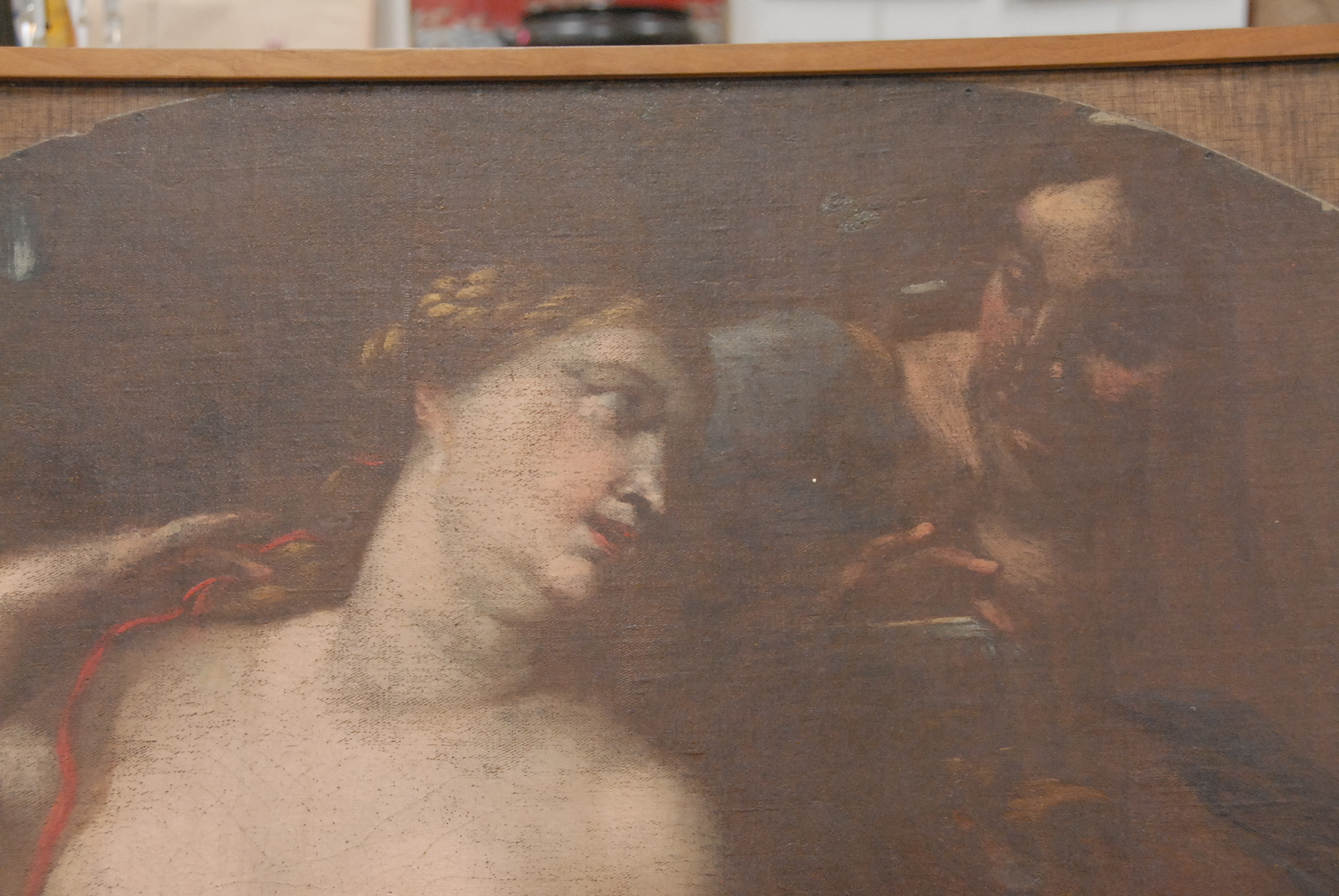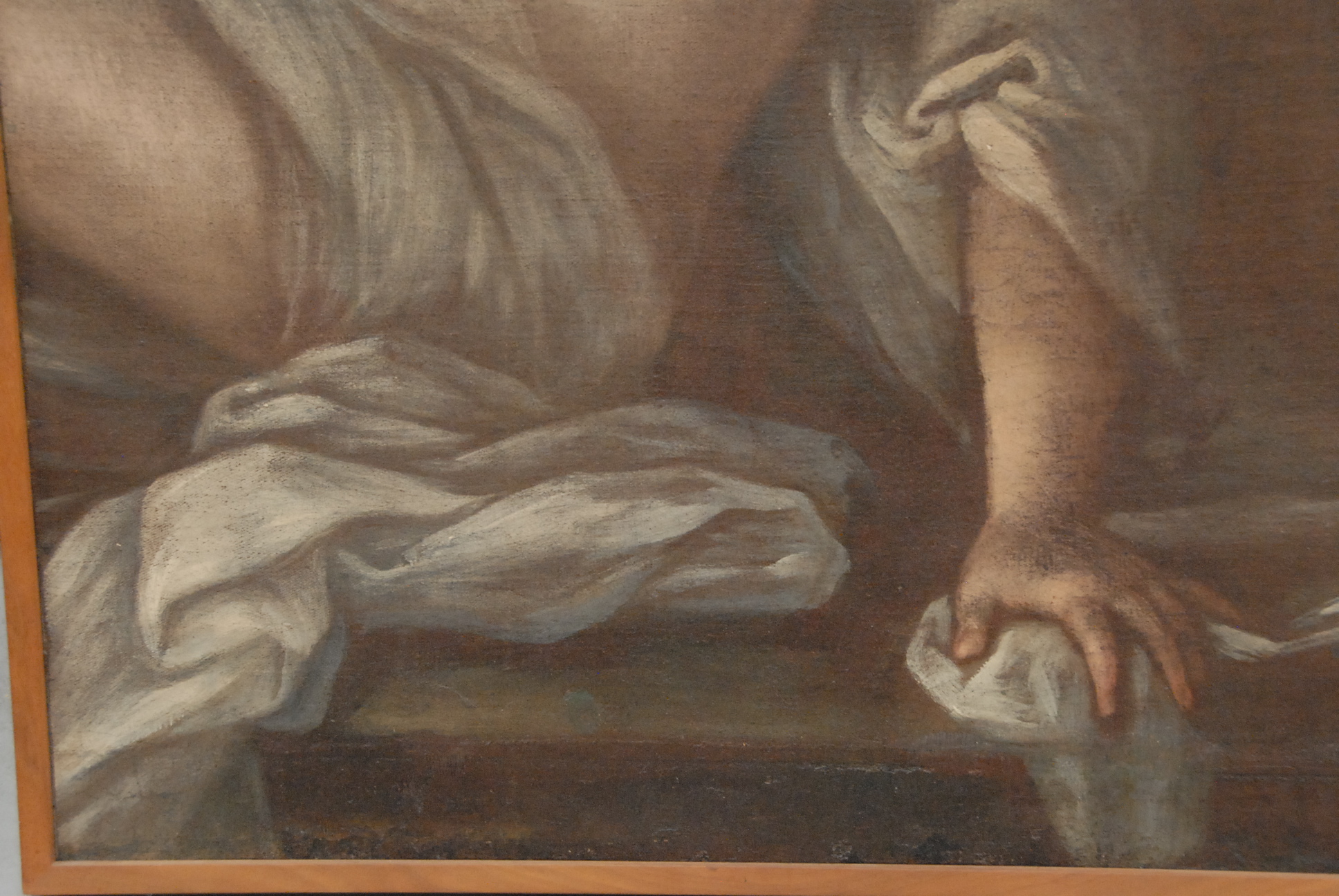 Old Master TWO WOMEN one draped in white cloth oil on canvas relined 42 1/2 x 34 1/4