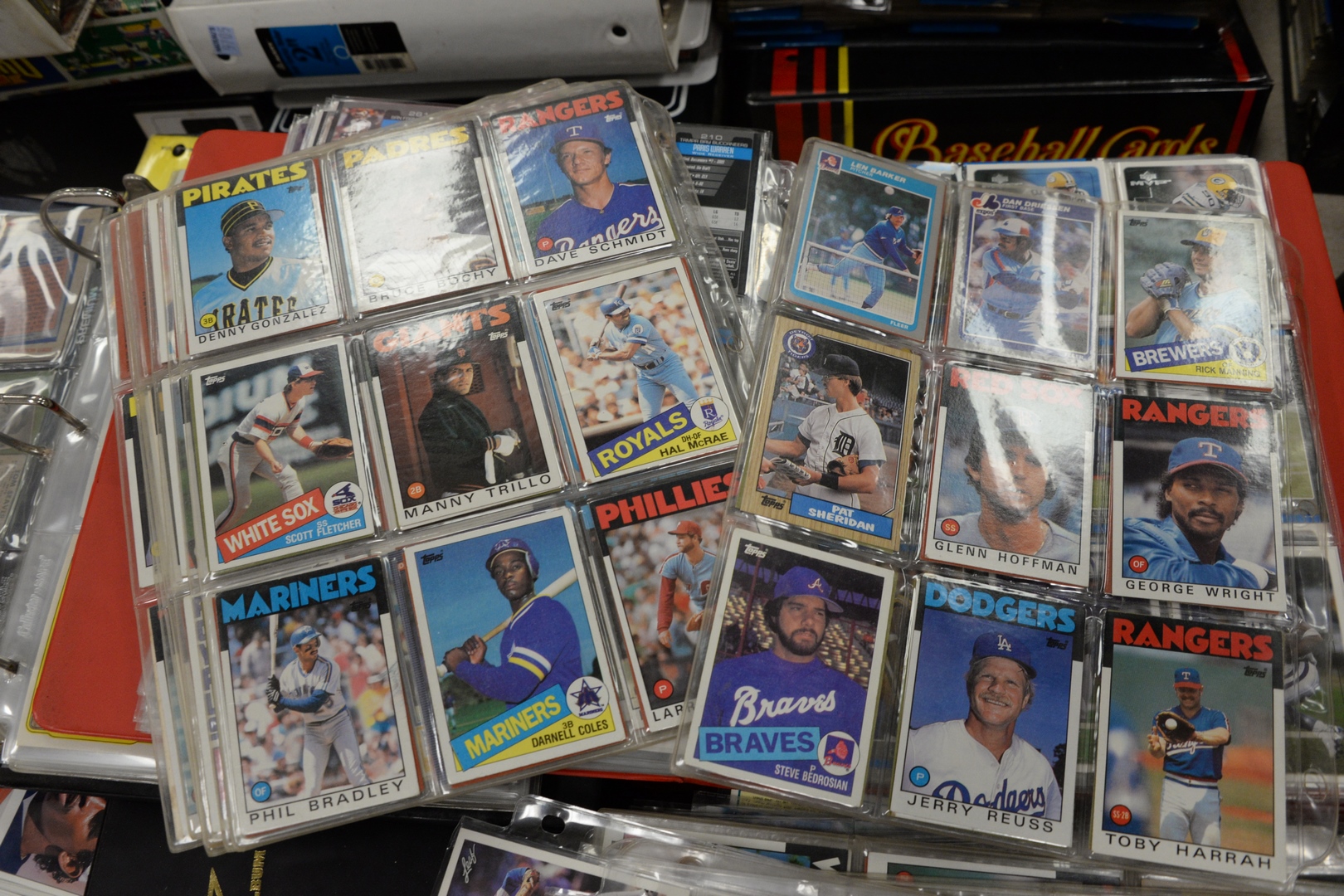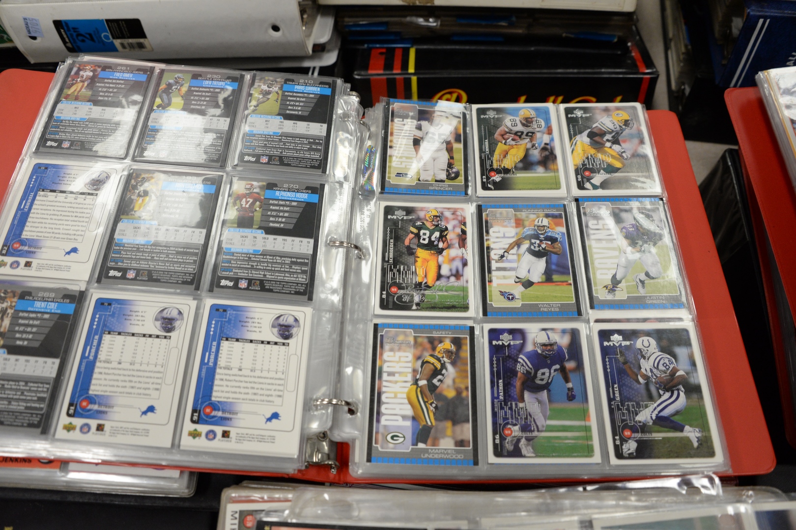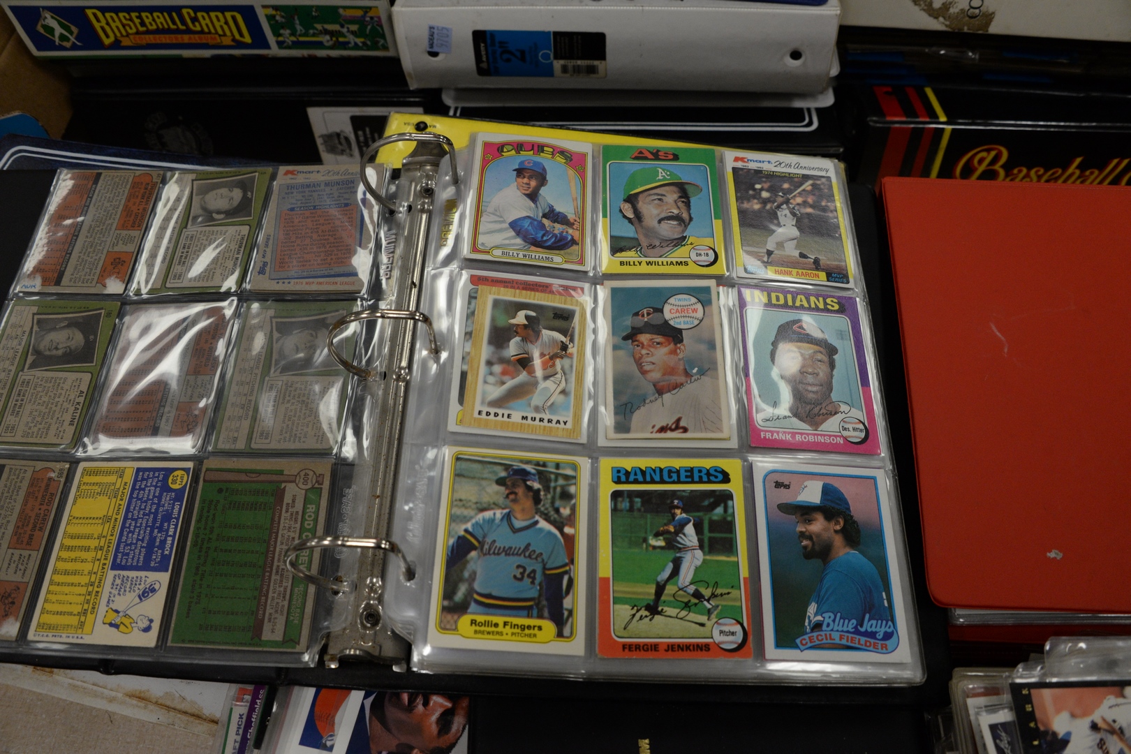 Approximately twenty-eight loose leaf binders of sports cards, to include baseball, football, hockey along with approximately 100 pages not in binders.