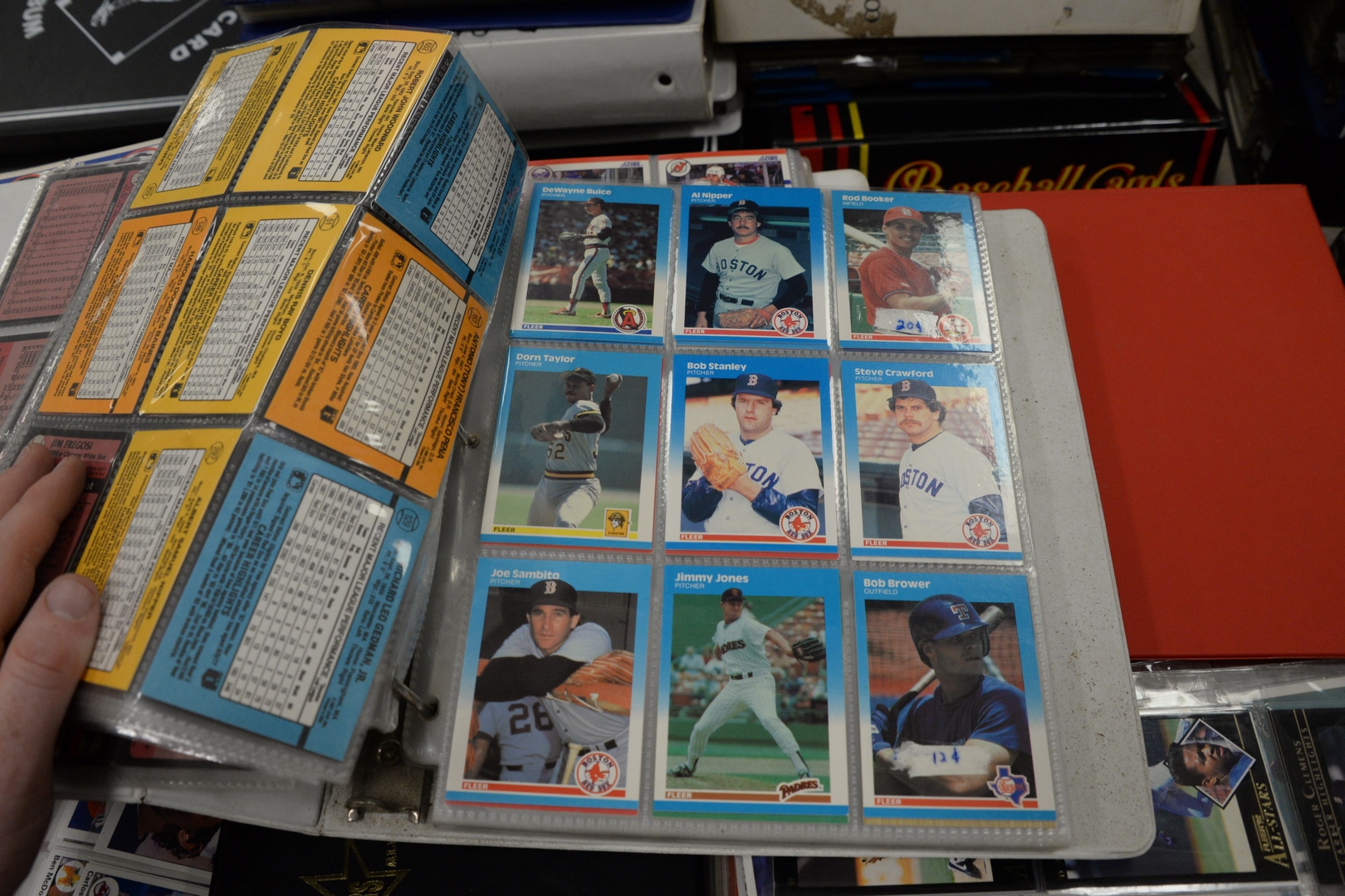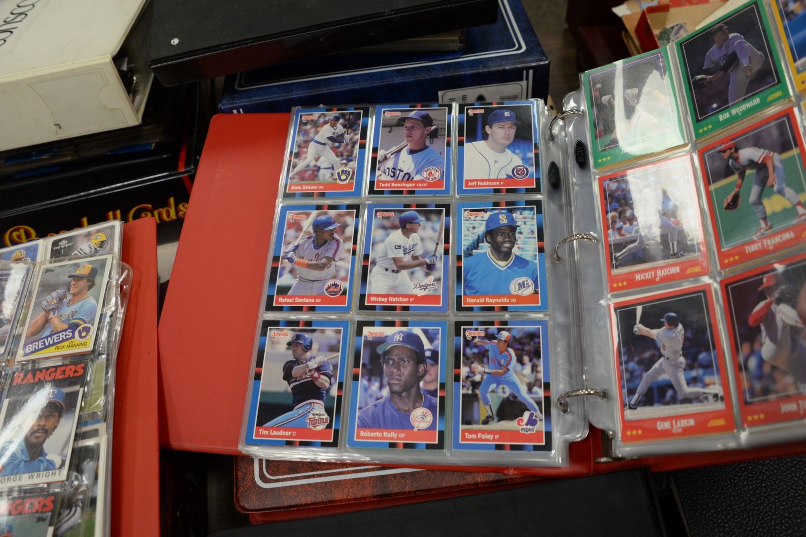 Lot 238: Approximately twenty-eight loose leaf binders of sports cards, to include baseball, football, hockey along with approximately 100 pa…