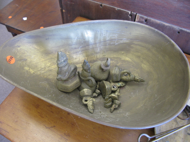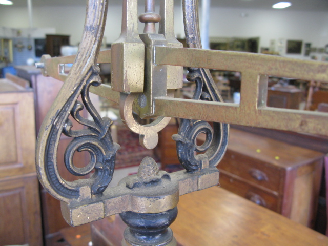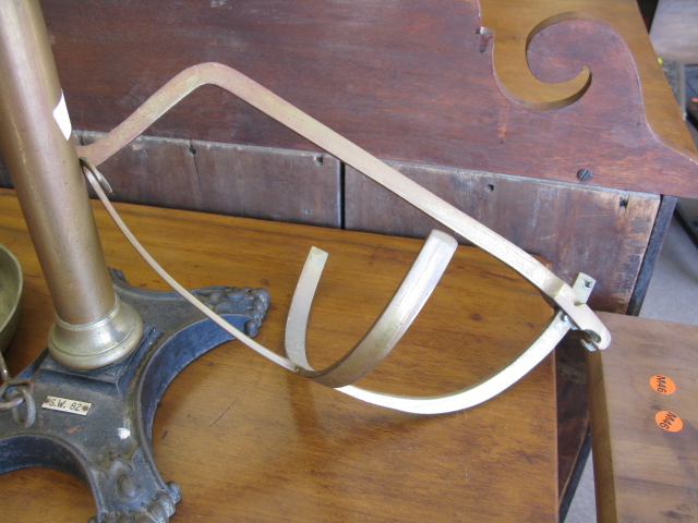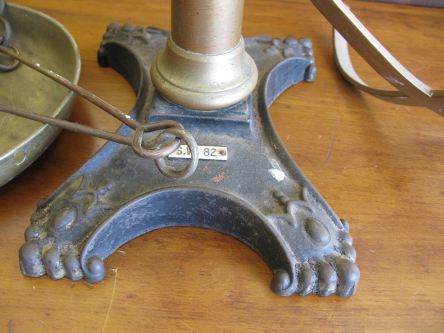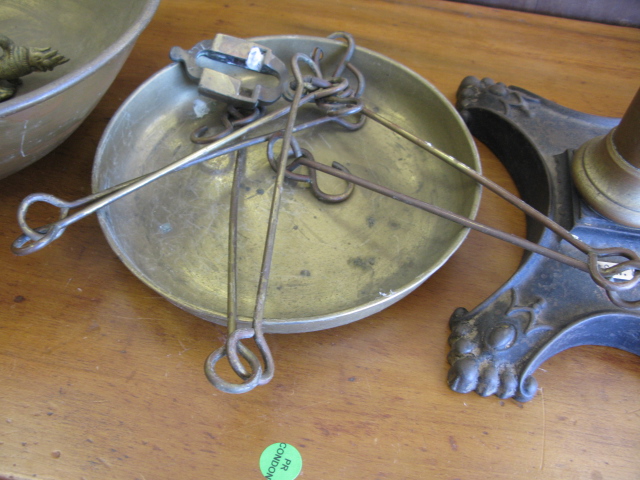 Brass balance scale marked W & T Avery Makers Birmingham, along with a stand