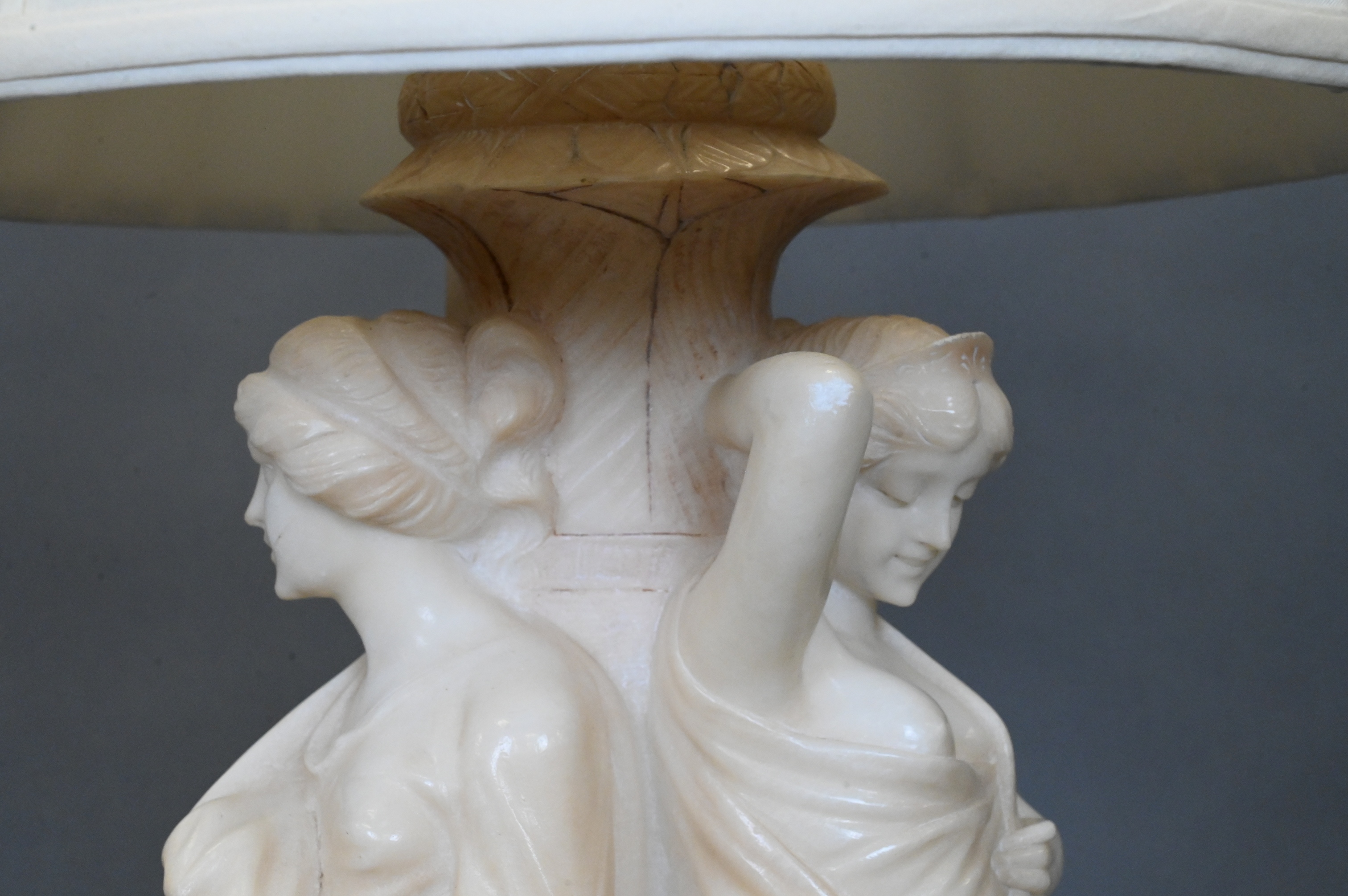 Lot 238: Continental Carved Alabaster Group of the Three Graces Lamp