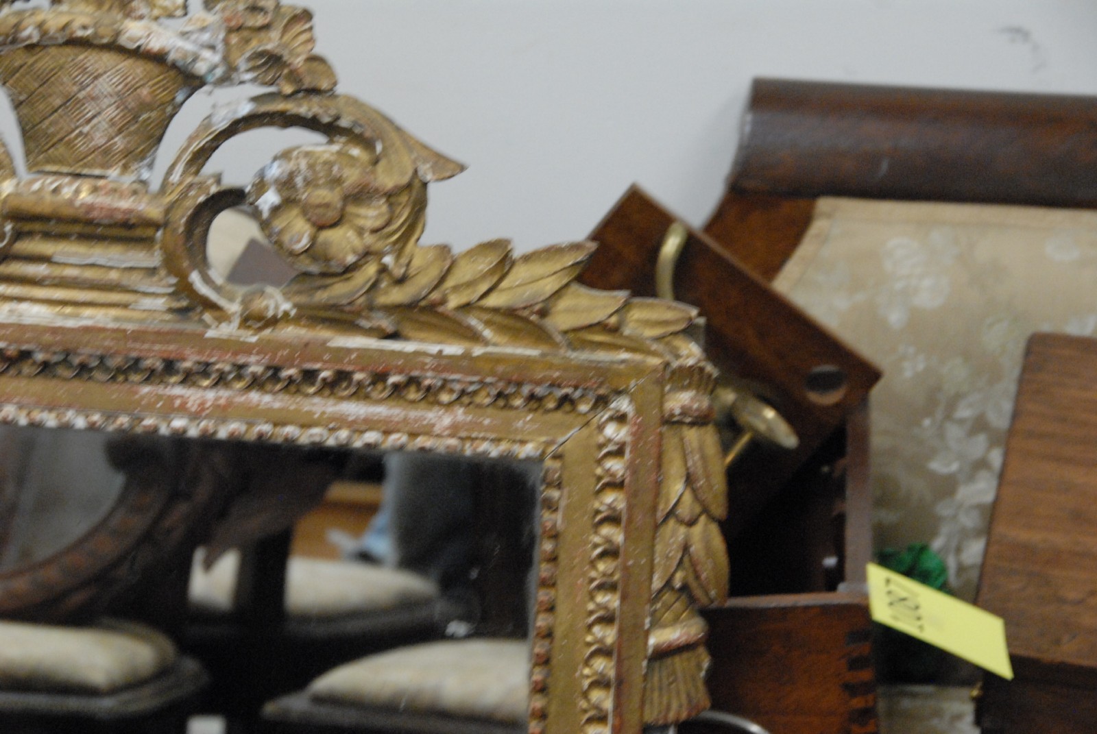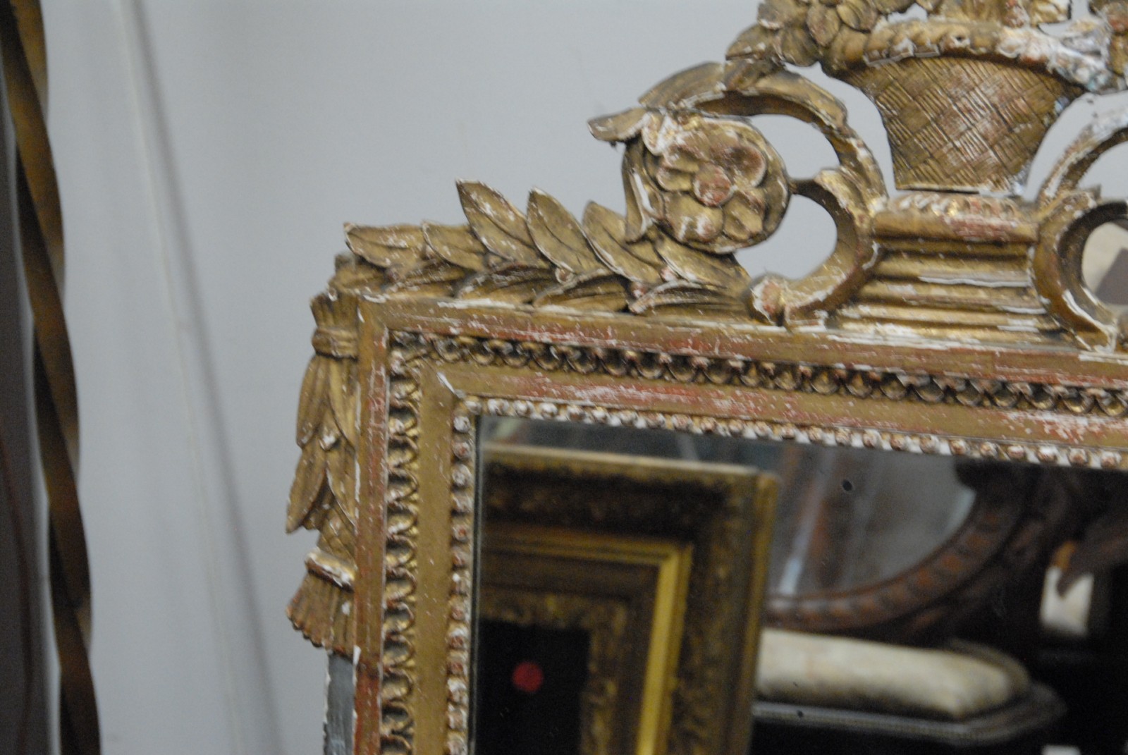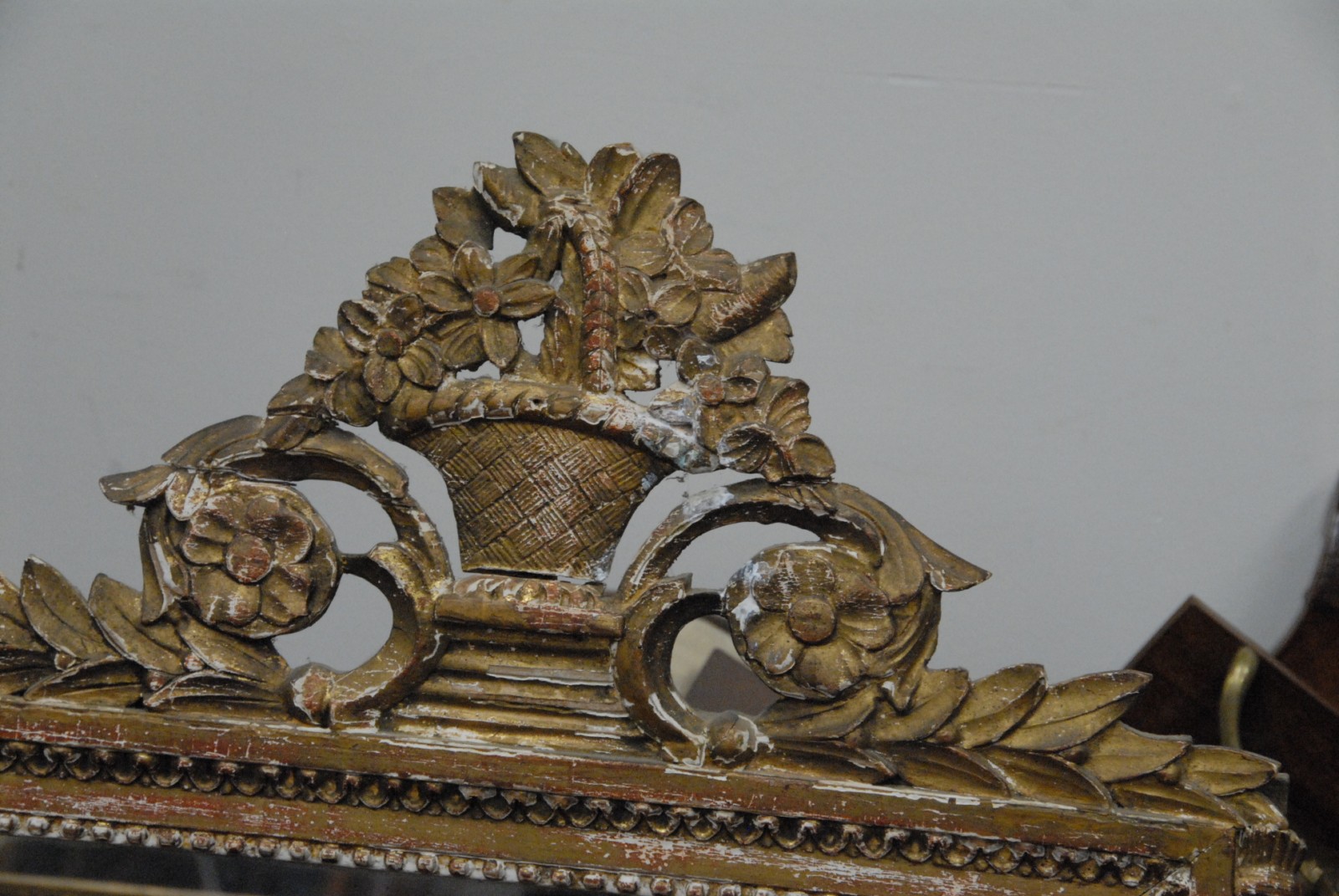 Continental mirror with original gilt having basket of flowers at top, early 19th century.