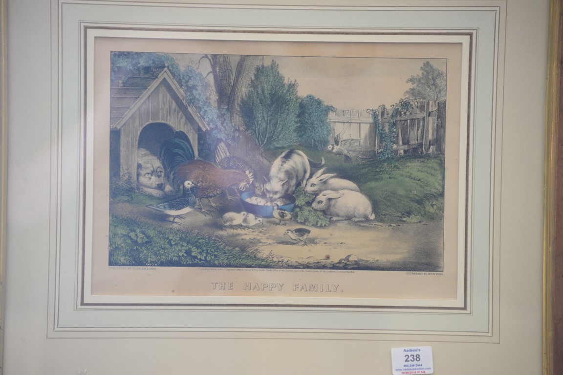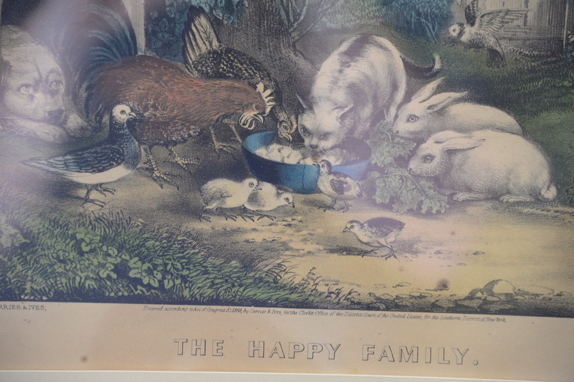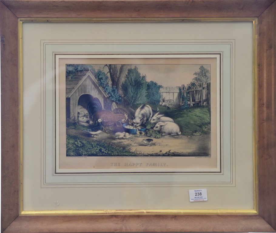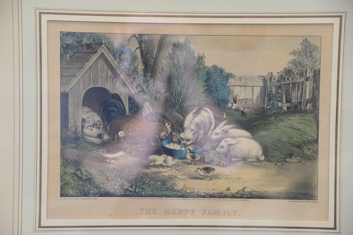 Lot 238: Currier & Ives hand colored lithograph, The Happy Family, sight size 9 1/2 x 13 1/2. Provenance: Property from Credit Suisse’…