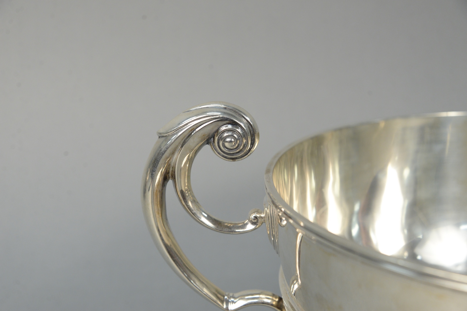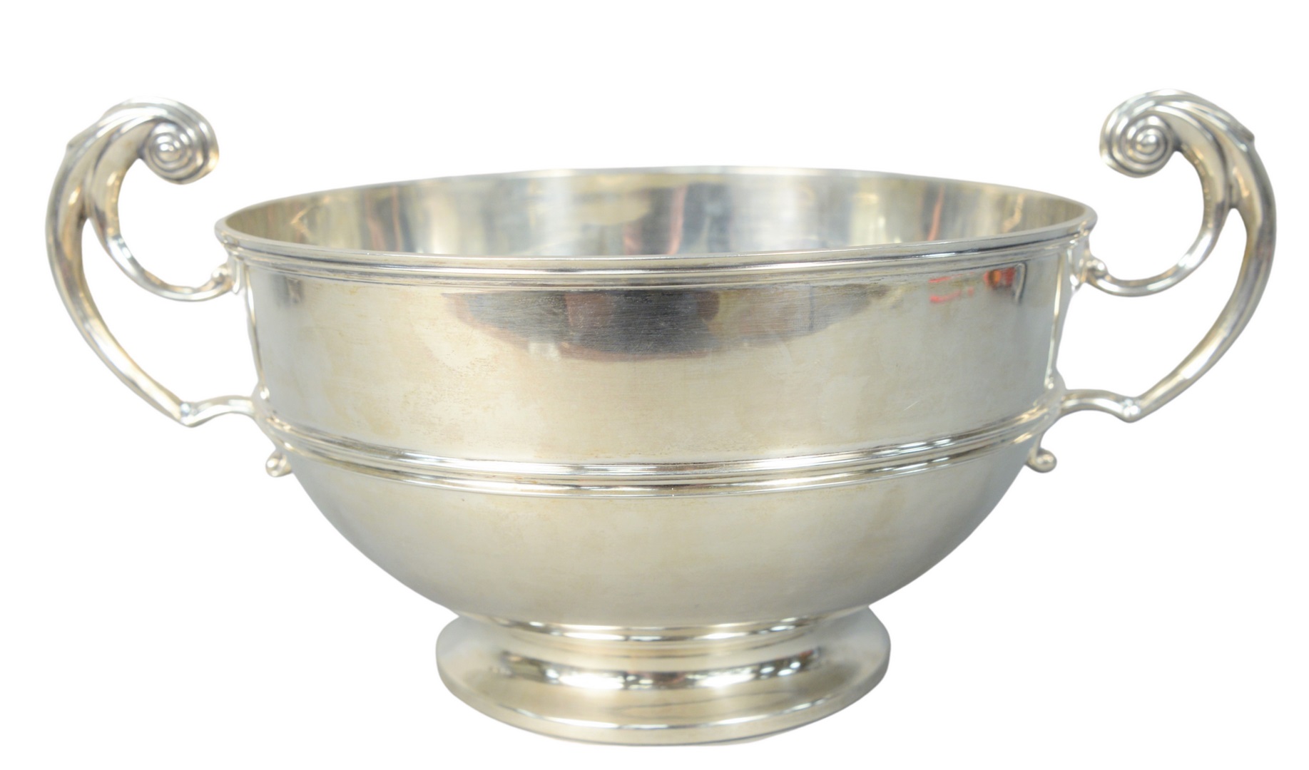 Lot 238: English Silver Footed Bowl with two handles height 7 1/2 inches, bowl diameter 11 inches 55.6 troy ounces