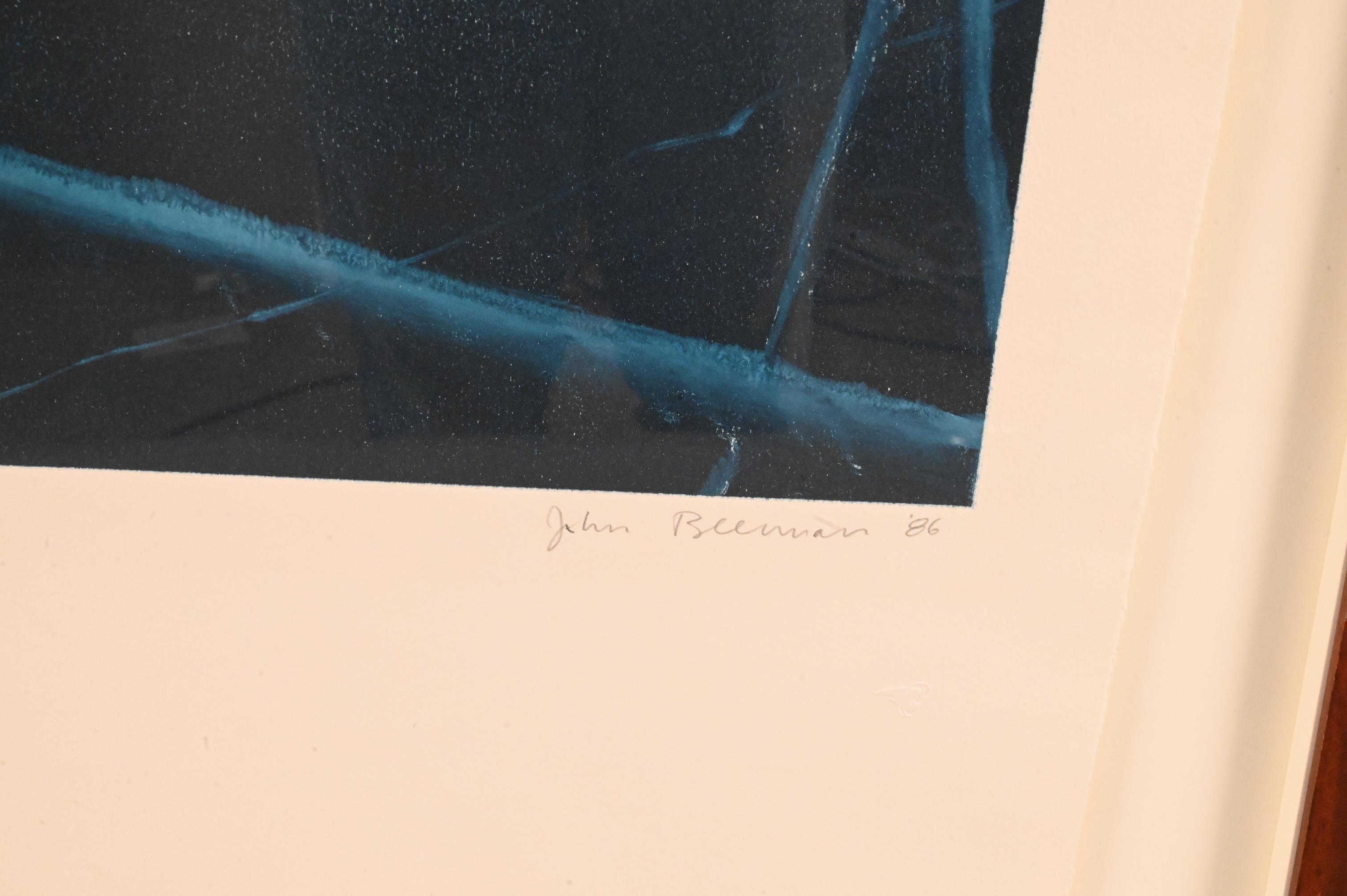 Signed and dated lower right John Beerman 86, embossed marking lower right