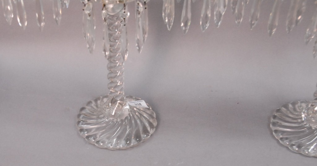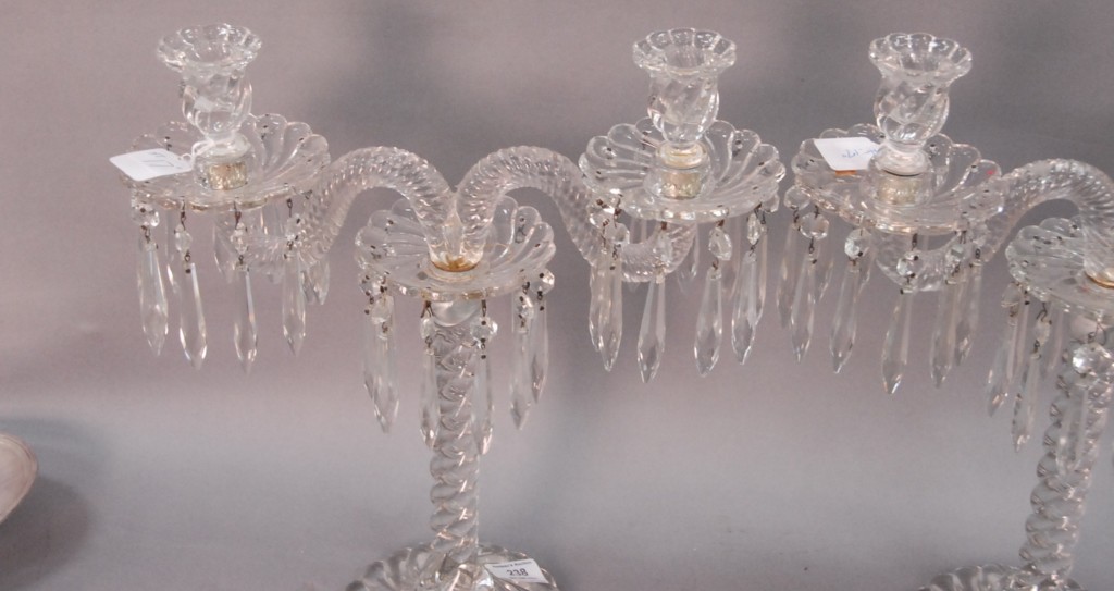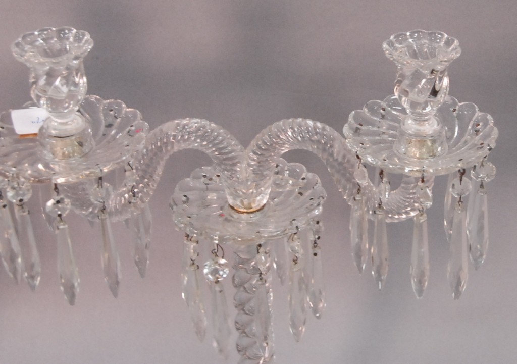 Pair Baccarat two light candelabra. height 16 1/2in.