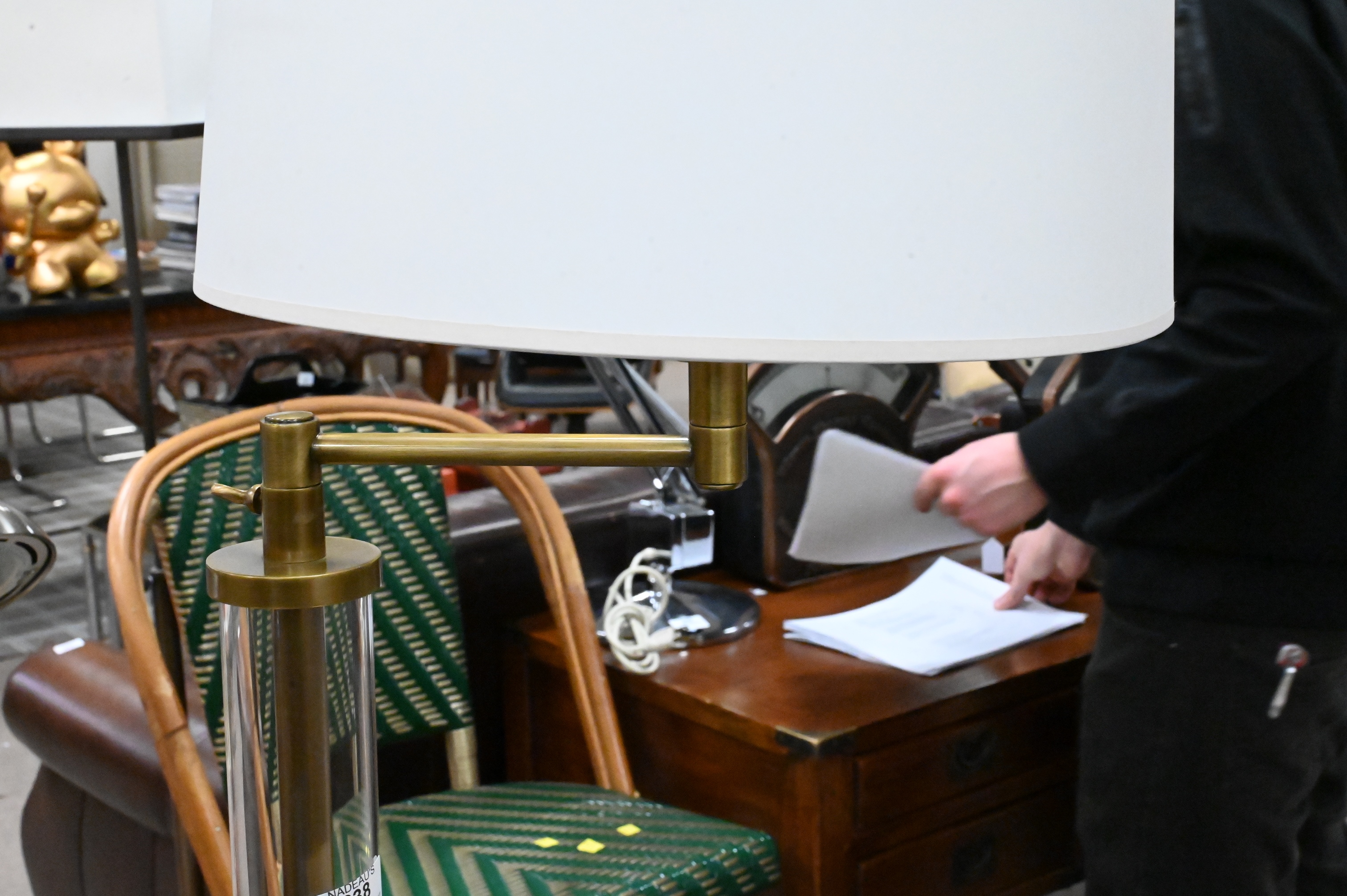 Lot 238: Pair of Brass and Glass Articulated Floor Lamps