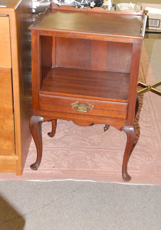 Pair of Fineberg night tables with one drawer each in need of refinishing.