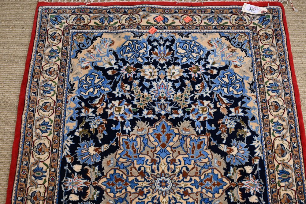 Lot 238: Silk and Wool Oriental Throw Rug, 2′ 4″ x 3′ 9″, Provenance: The Estate of Alina Roisen, Park Avenue, New York.