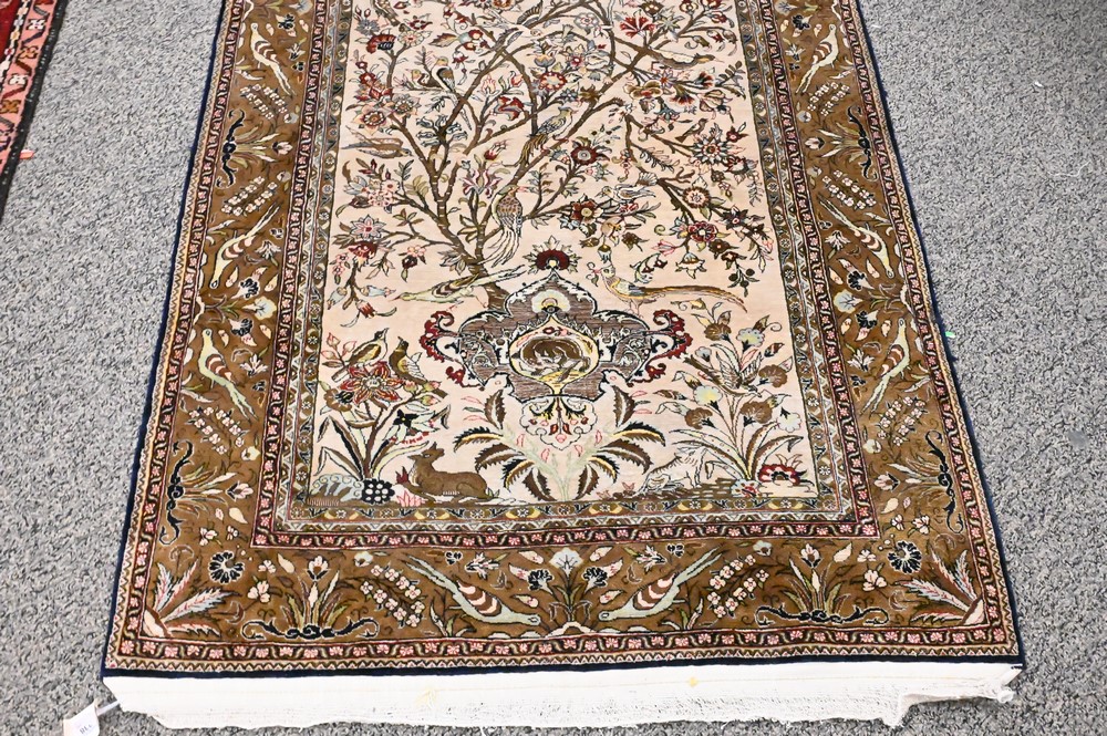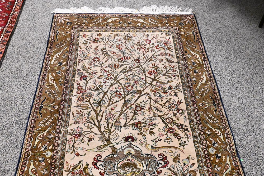Silk Oriental Scatter Rug, Tree of Life, 3′ 5″ x 5′ 7″.