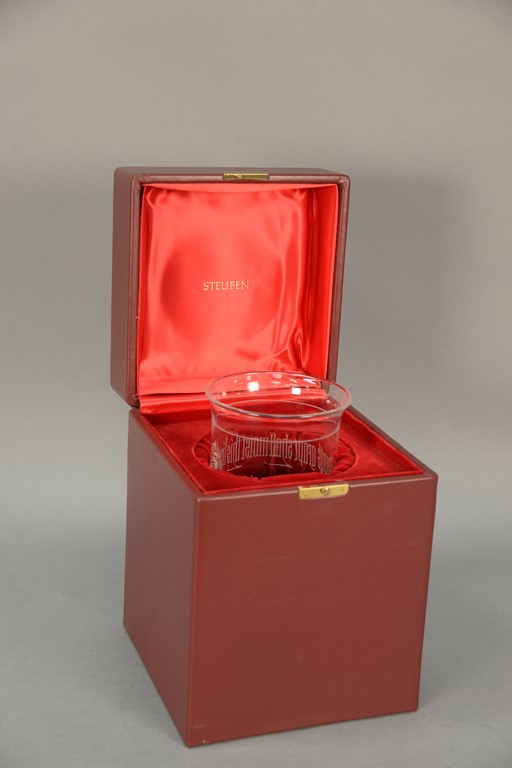 Lot 238: Steuben crystal stemmed Now No More the Juice of Egypts Grape Shall Moist This Lip in original box. ht. 12in.