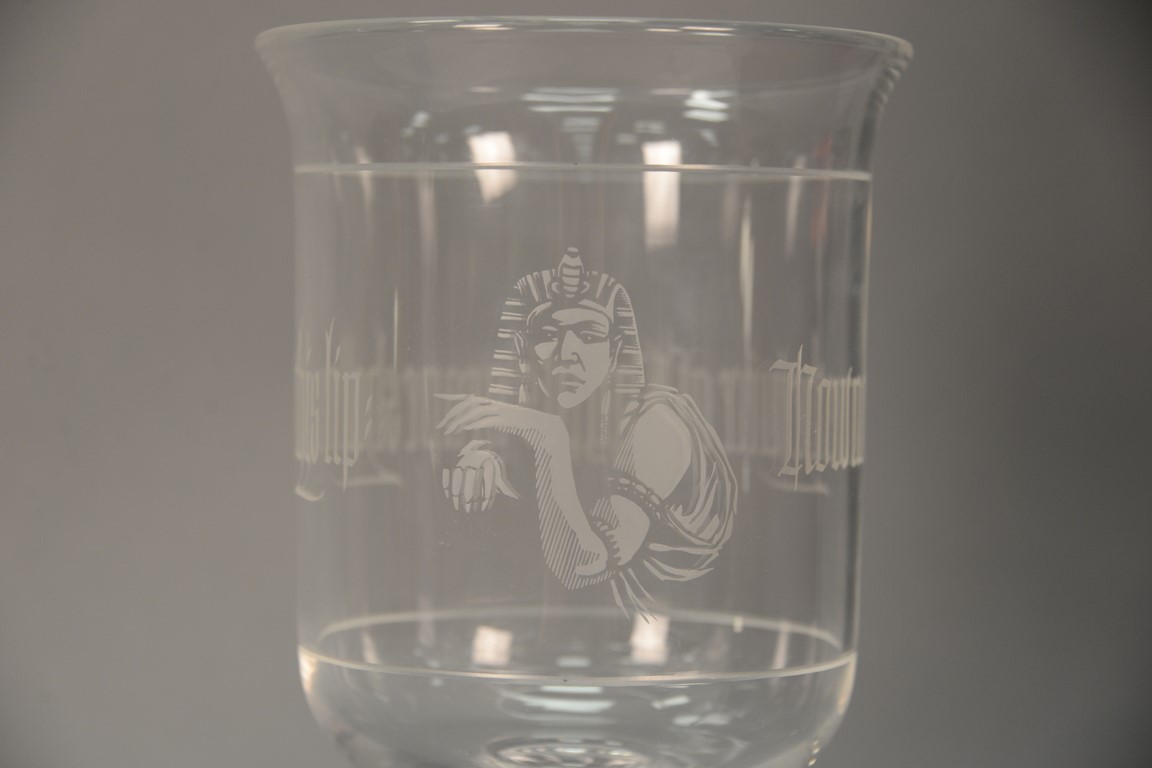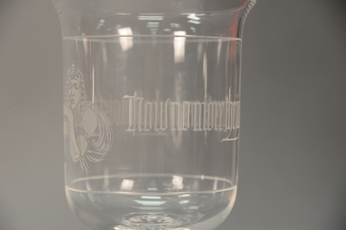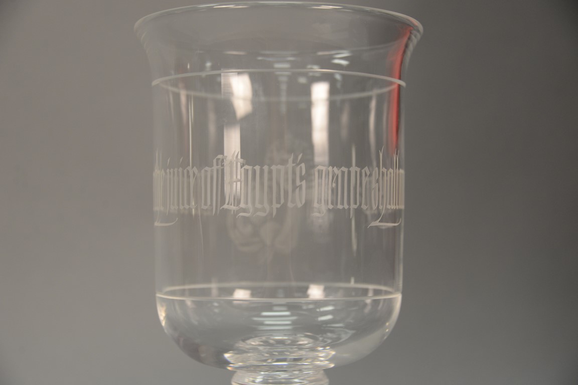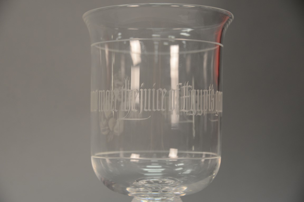 Steuben crystal stemmed Now No More the Juice of Egypts Grape Shall Moist This Lip in original box. ht. 12in.