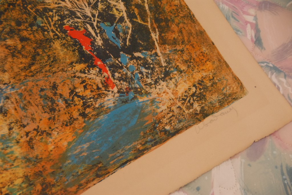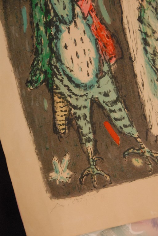 Three unframed prints to include Regatta at Martha’s Vineyard by Linda Fabian AP 20/50, A. Carigiel of birds 100/150, and Abstract signed indistinctly 45/120.