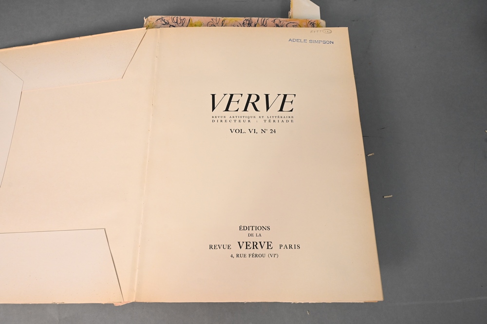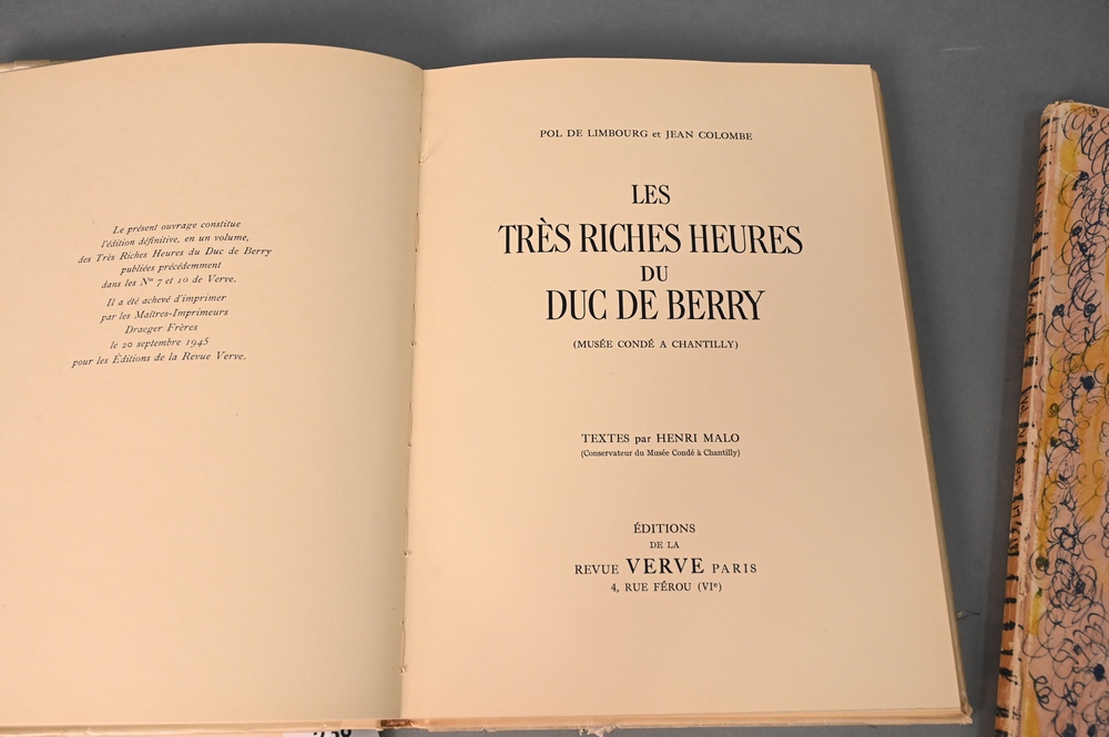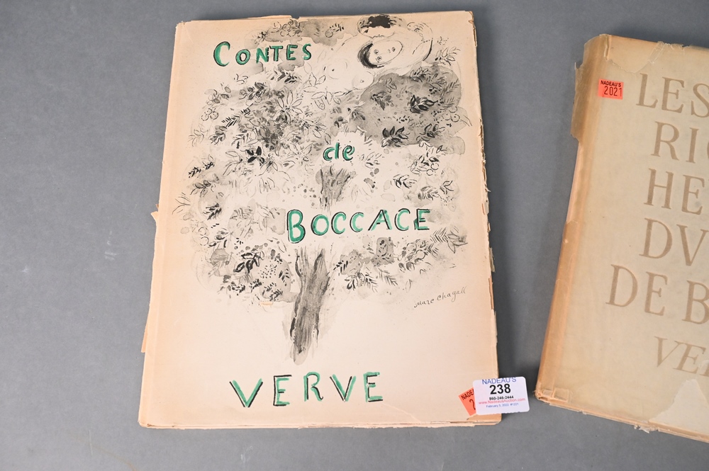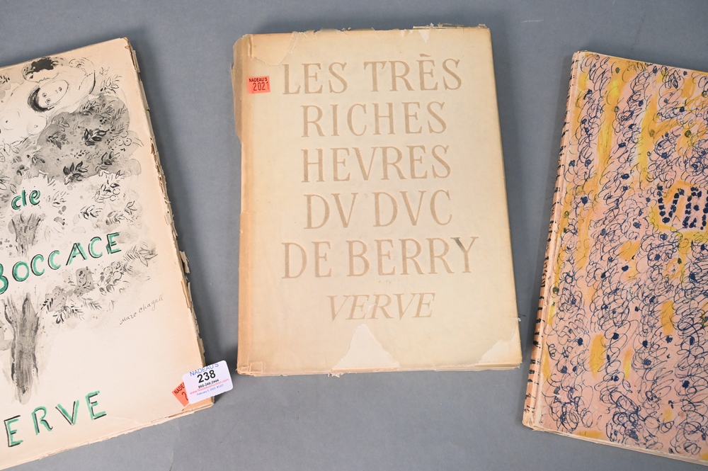 Lot 238: Three Verve Books, to include Contes de Boccace Verve Vol VI Paris Lavis de Marc Chagall; Les Tres Riches Heures Du Duc De Berry Verve, Textes Par Henri Malo 1945; and 1947 Verve Magazine Couleur de Bonnard.