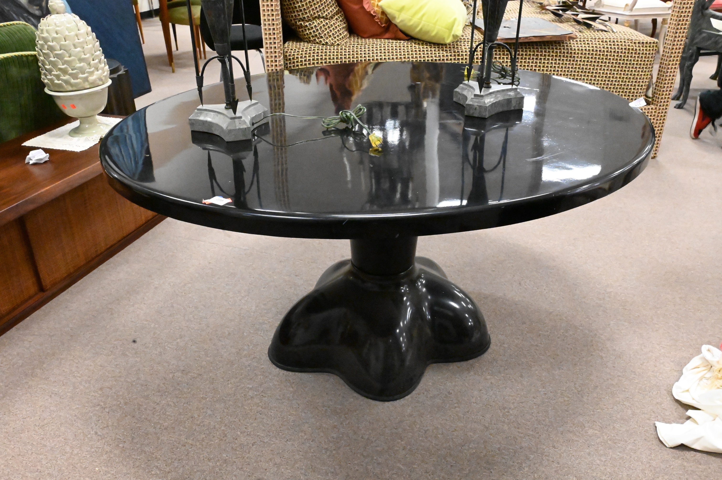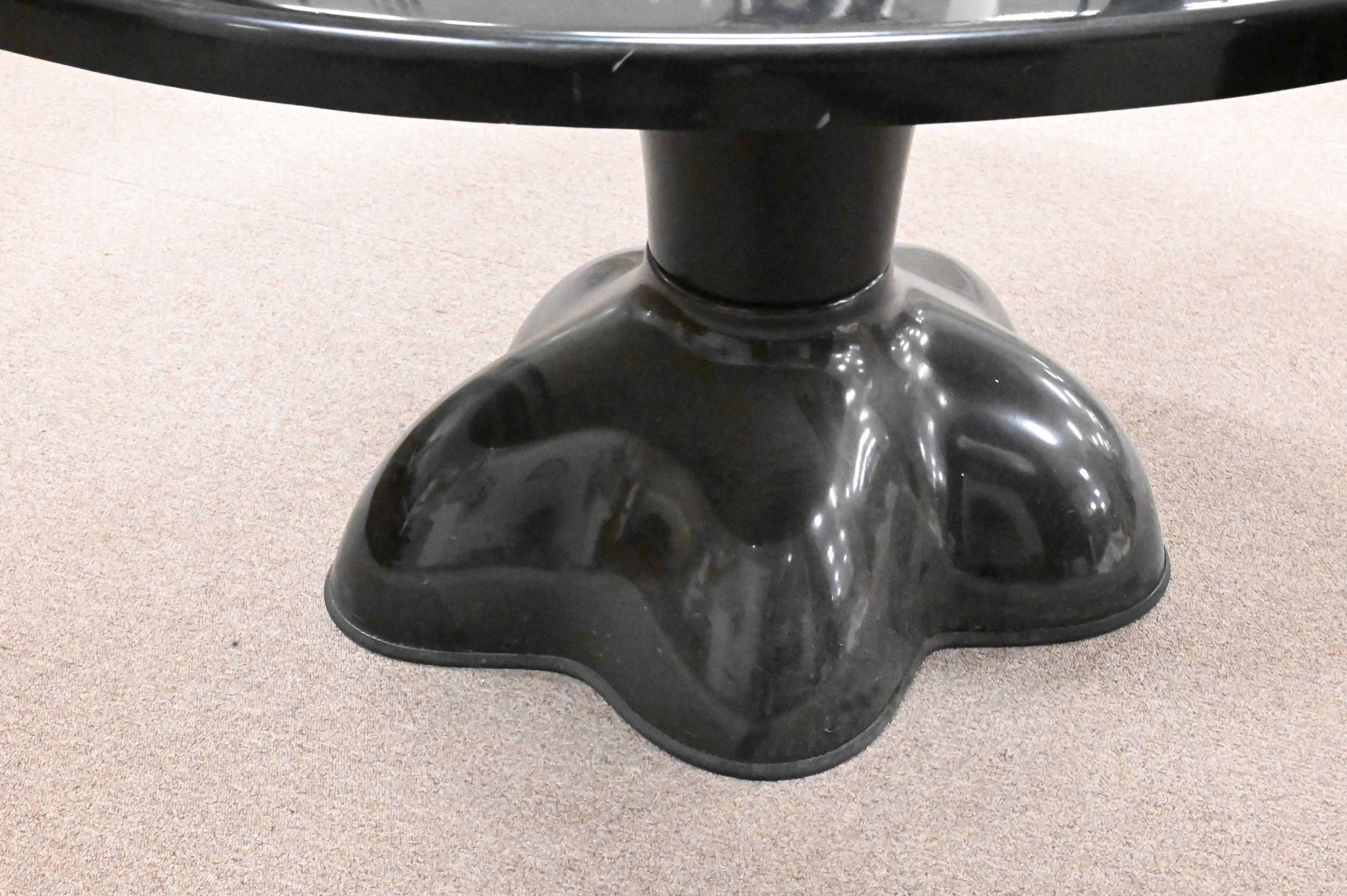 Contemporary Composition Molded Black Plastic Pedestal Base, having oval top on a tapering stem with large ribbed domed foot, overall fair condition, scratches, areas to top dirty, some rubbing, height 29 inches, width 57 inches. Provenance: Property from a private New York collection sold to benefit charitable foundations.