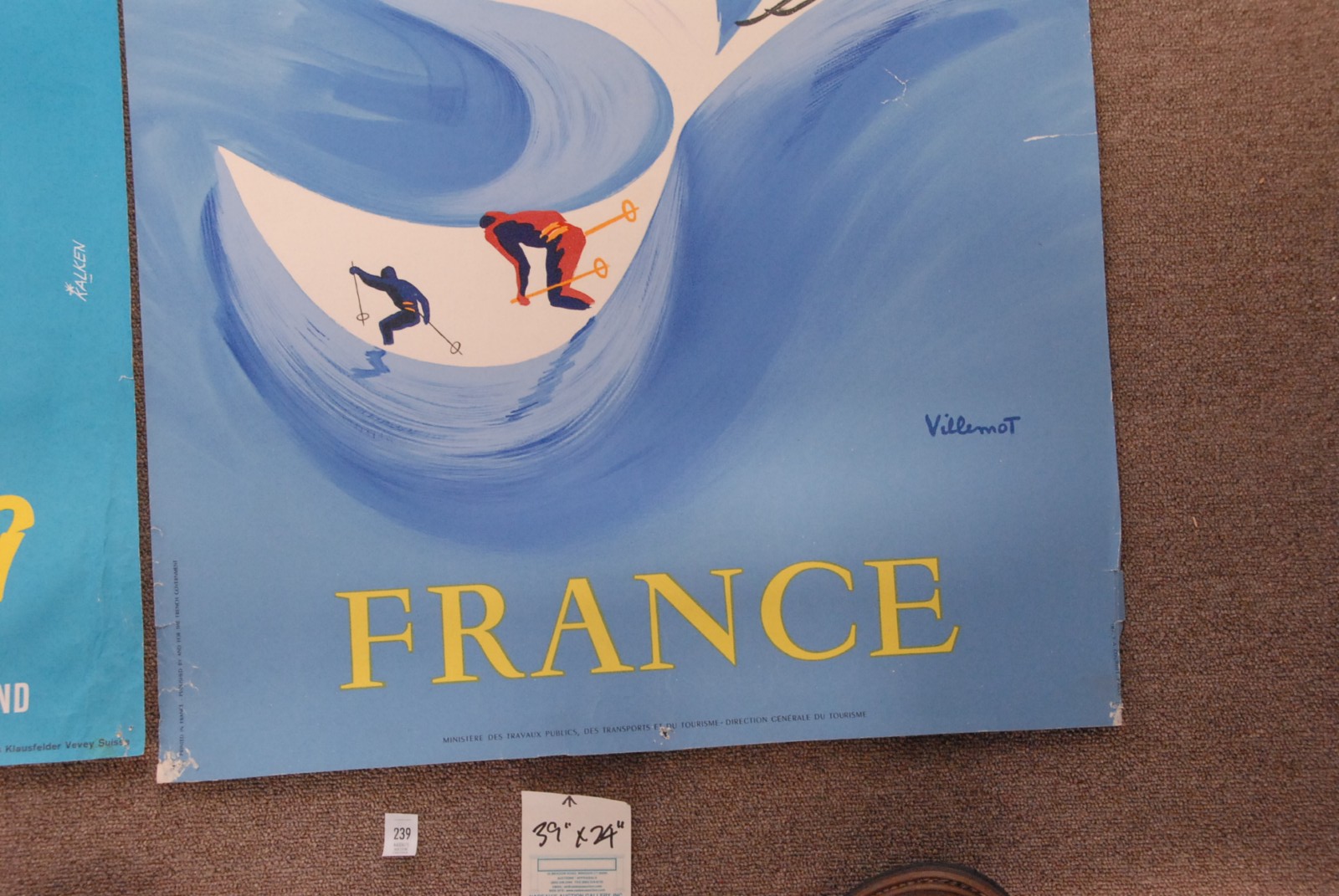 French skiing poster, Winter sports France, mid 20th century, small tears
