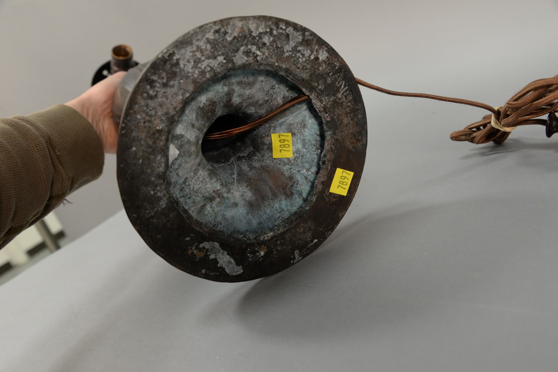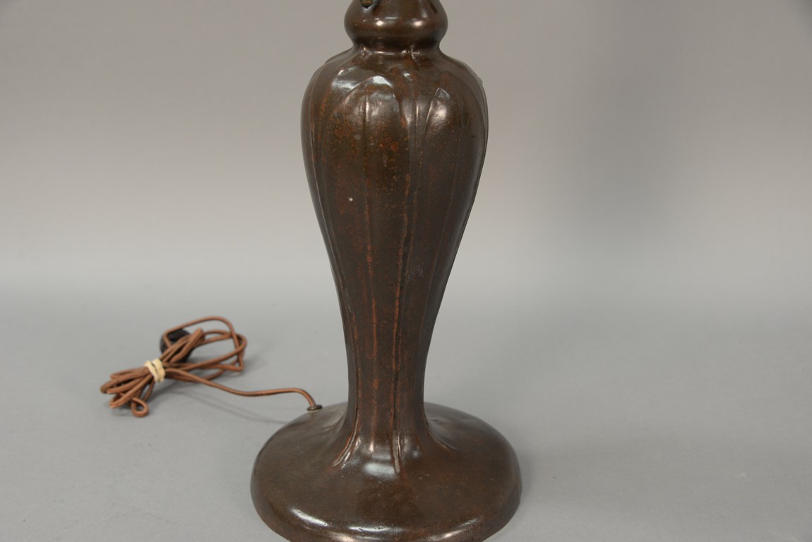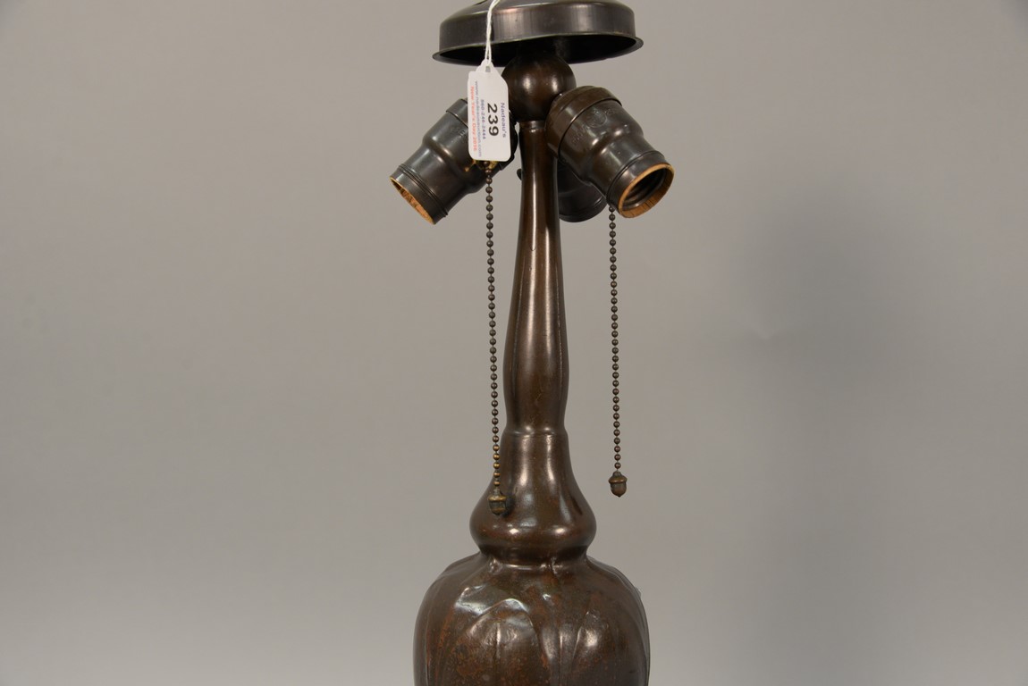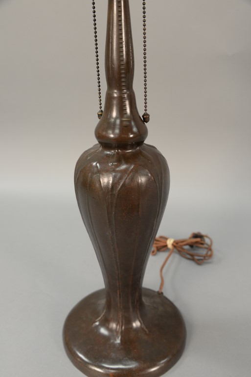 Handel lamp base with three sockets, signed Handel. dia. of top 3 3/4 in. ht. 23 1/2in.