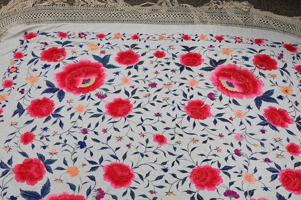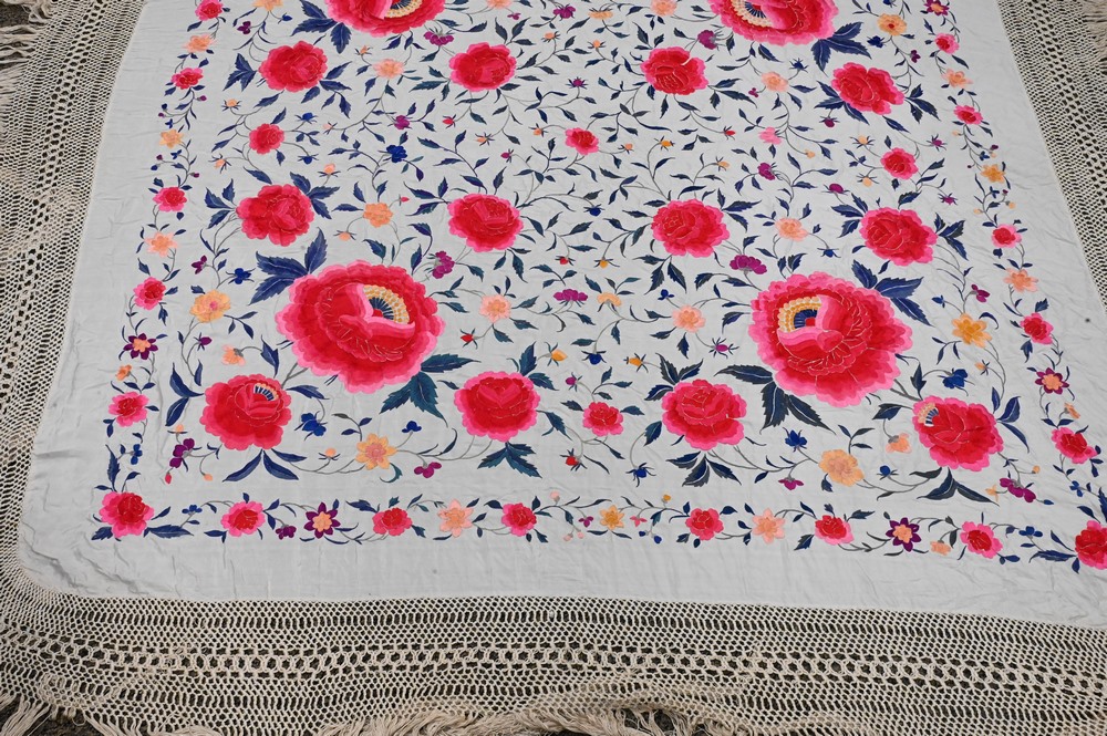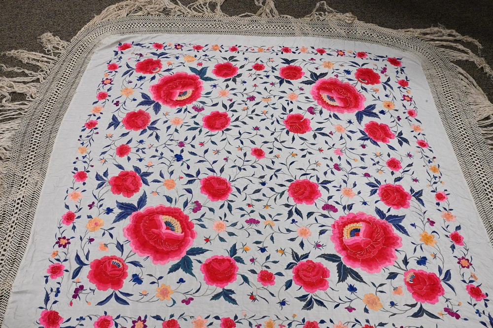 Lot 239: Silk Embroidered Piano Shawl.