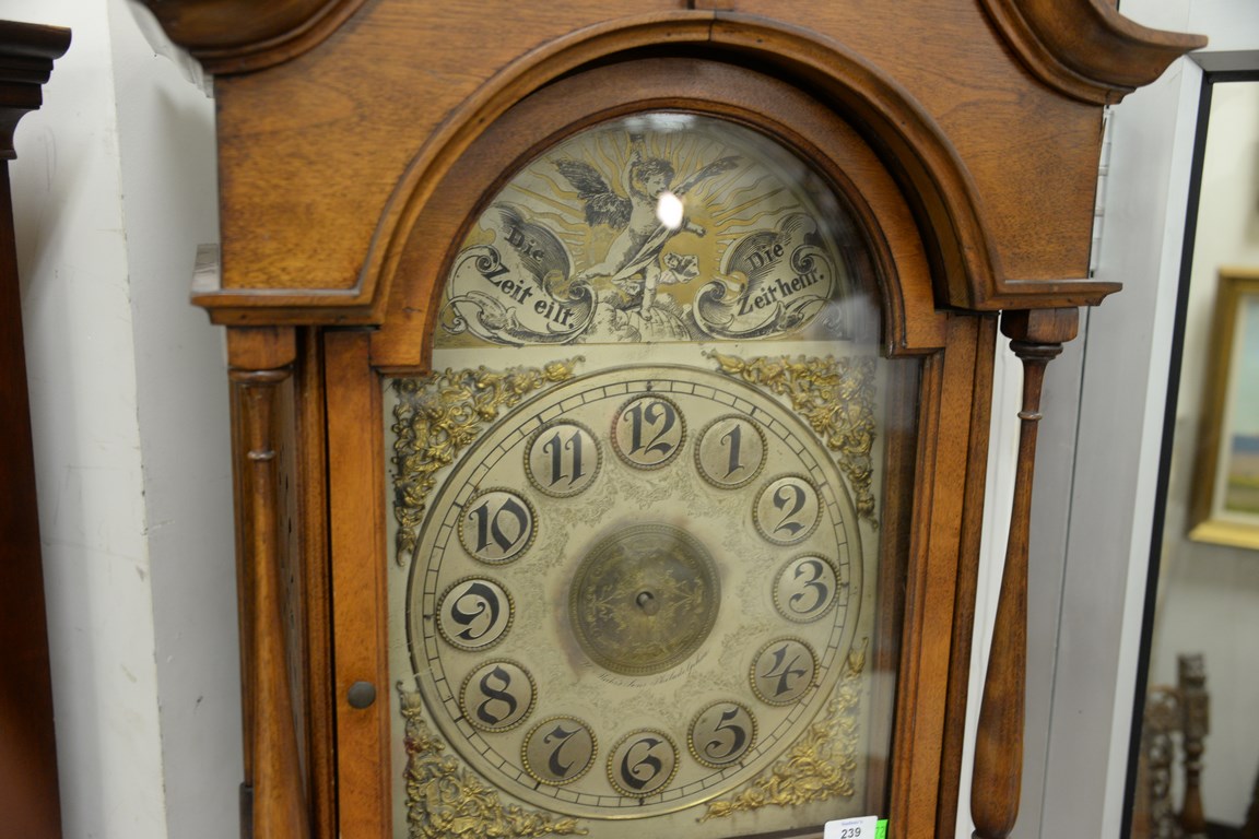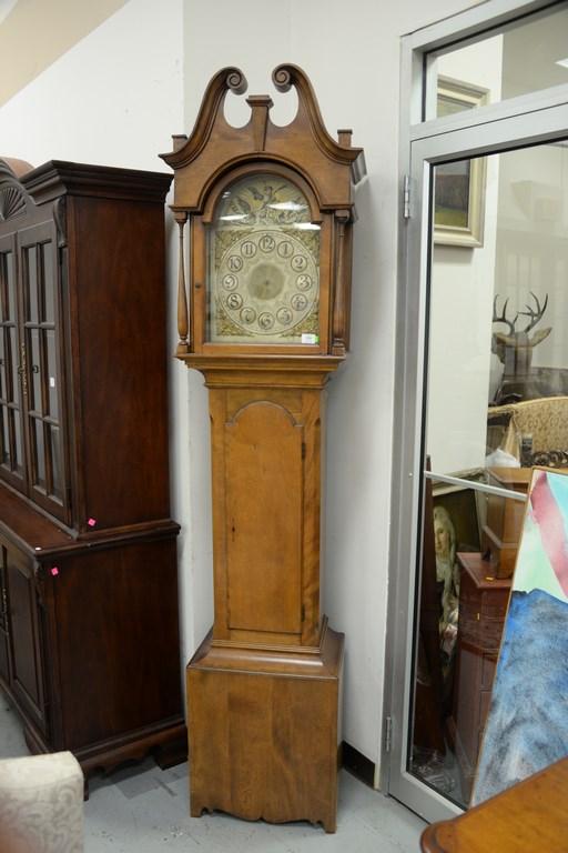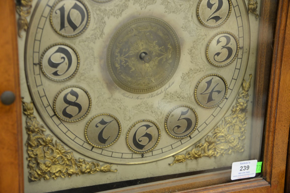 Tall case clock with brass works dial marked H. Muhrs Sons Philadelphia no hands, ht. 89 in.
